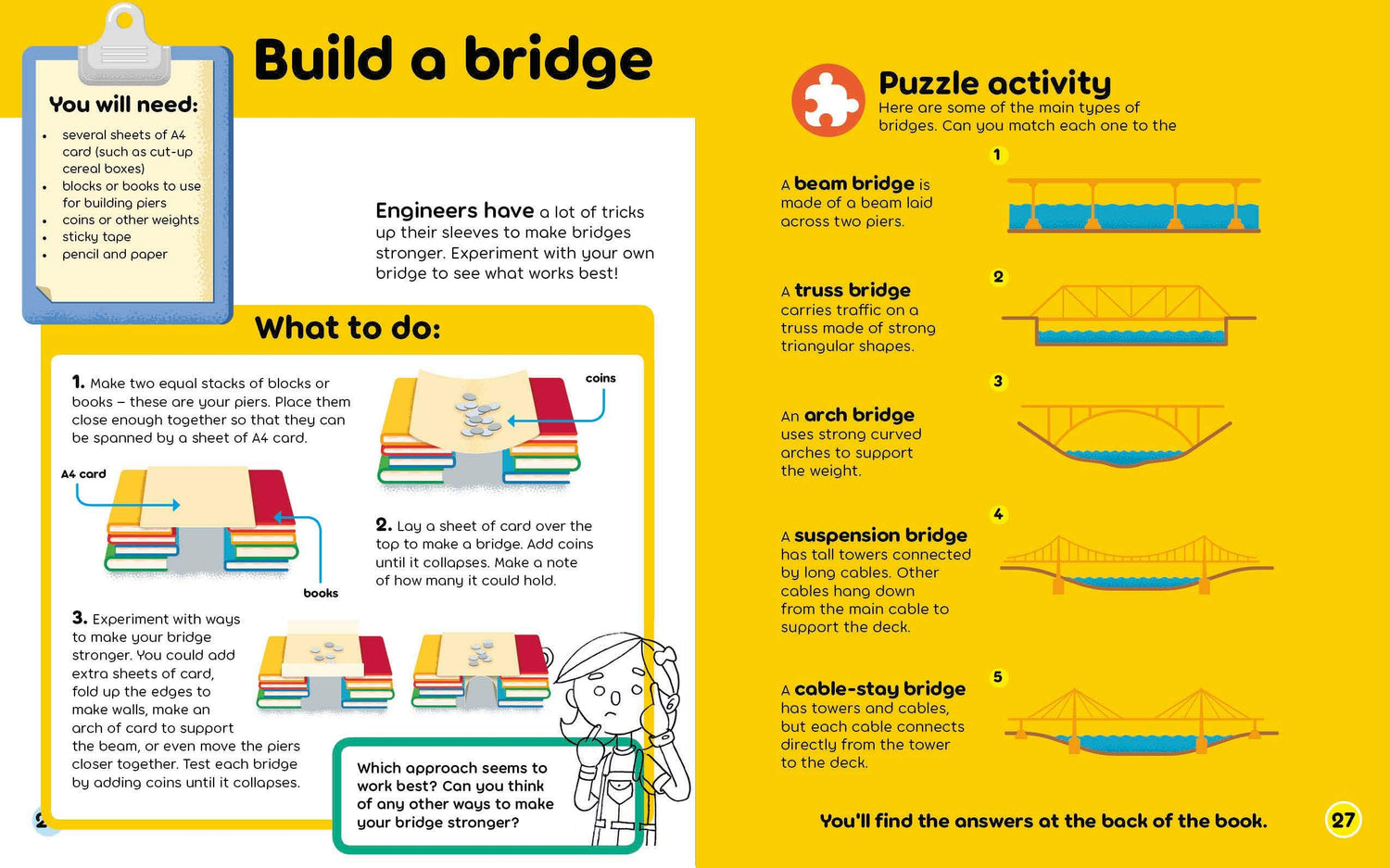How do traffic lights work? What's the strongest shape? How can you build a super-fast zipwire? With the help of dynamic illustrations and fun activities, My STEM Day: Engineering takes you through the day and explains how engineering has a role in everyday tasks, from cooling your food to making your toilet flush. Discover how engineering powers everything from the journey to school to your night-time bath, and everything in between.There are tons of experiments, projects and activities for readers to try themselves, and every page is filled with amazing original illustrations which explain engineering concepts in a fun and accessible way.