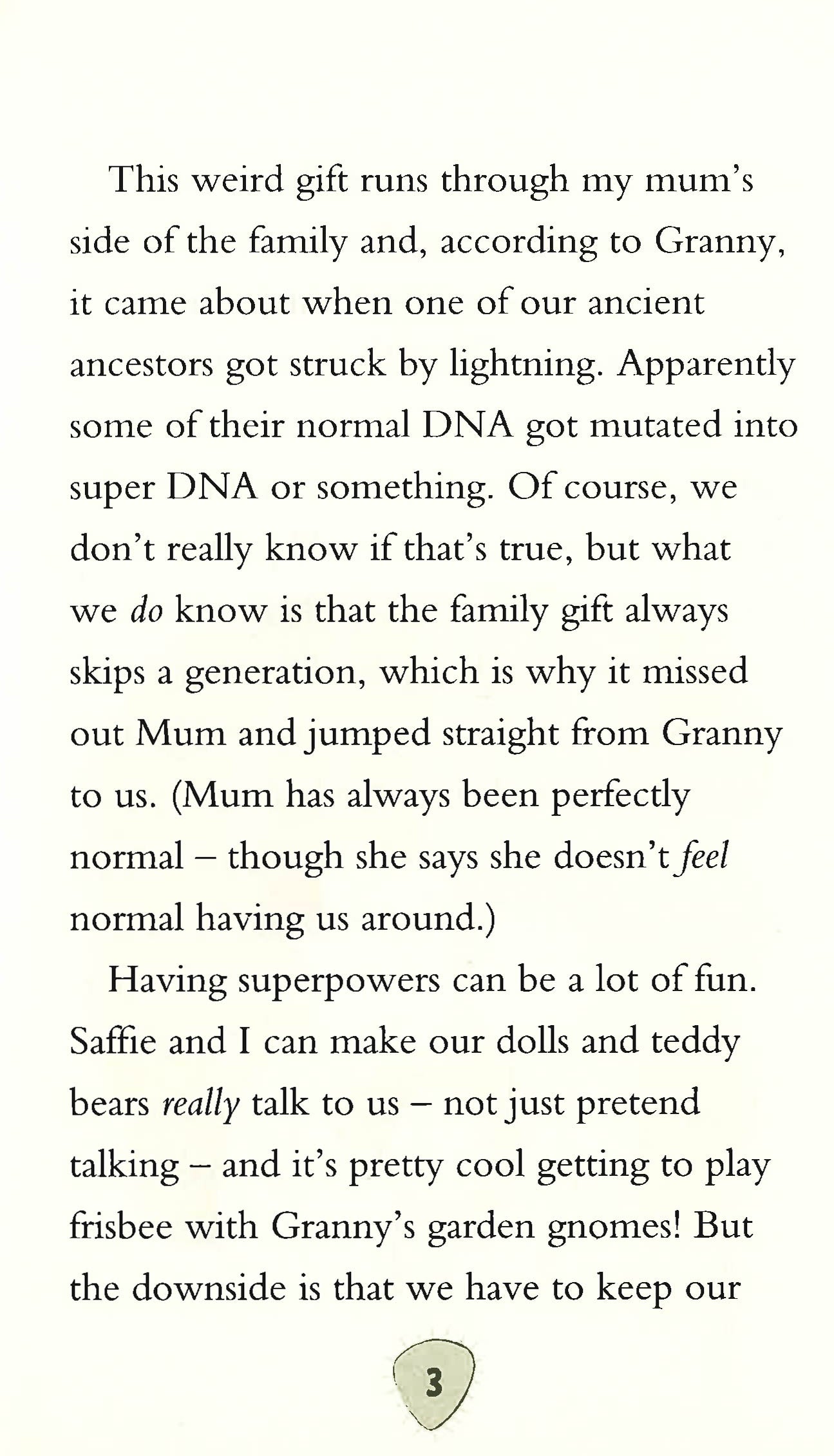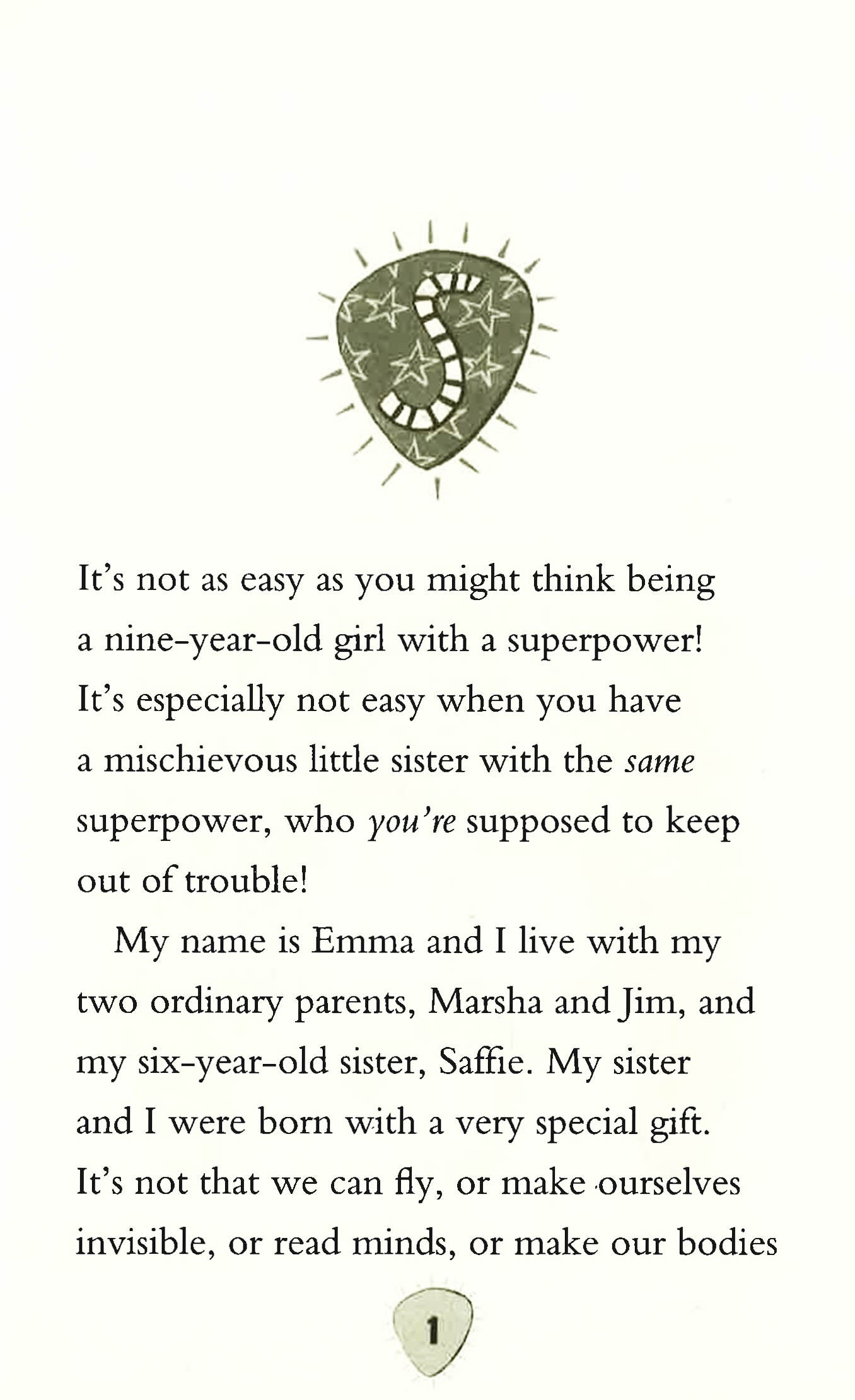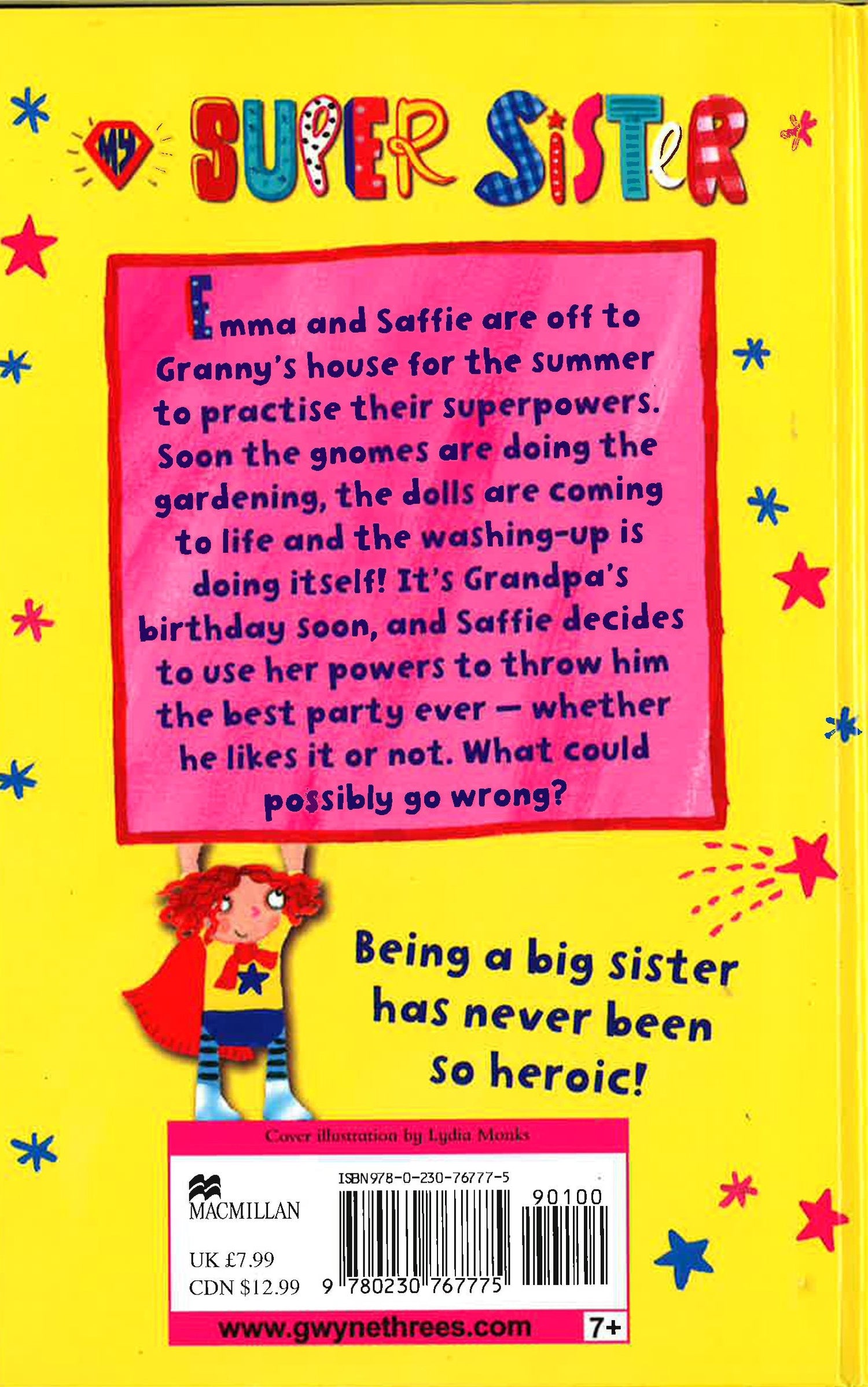 Emma and Saffie are going to stay with their grandparents for the summer to learn how to use their superpowers. Grandma has powers too, but Grandpa doesn't, and he definitely doesn't like the gnomes doing the gardening, or the washing-up doing itself - he'd rather play with his model aeroplanes. As the summer passes, the girls are having lots of fun - Emma brings a whole doll's house to life (and even learns to bake tiny cakes in the kitchen), but all Saffie wants is to cheer up Grandpa - so she decides to throw him the best party ever. What could possibly go wrong?