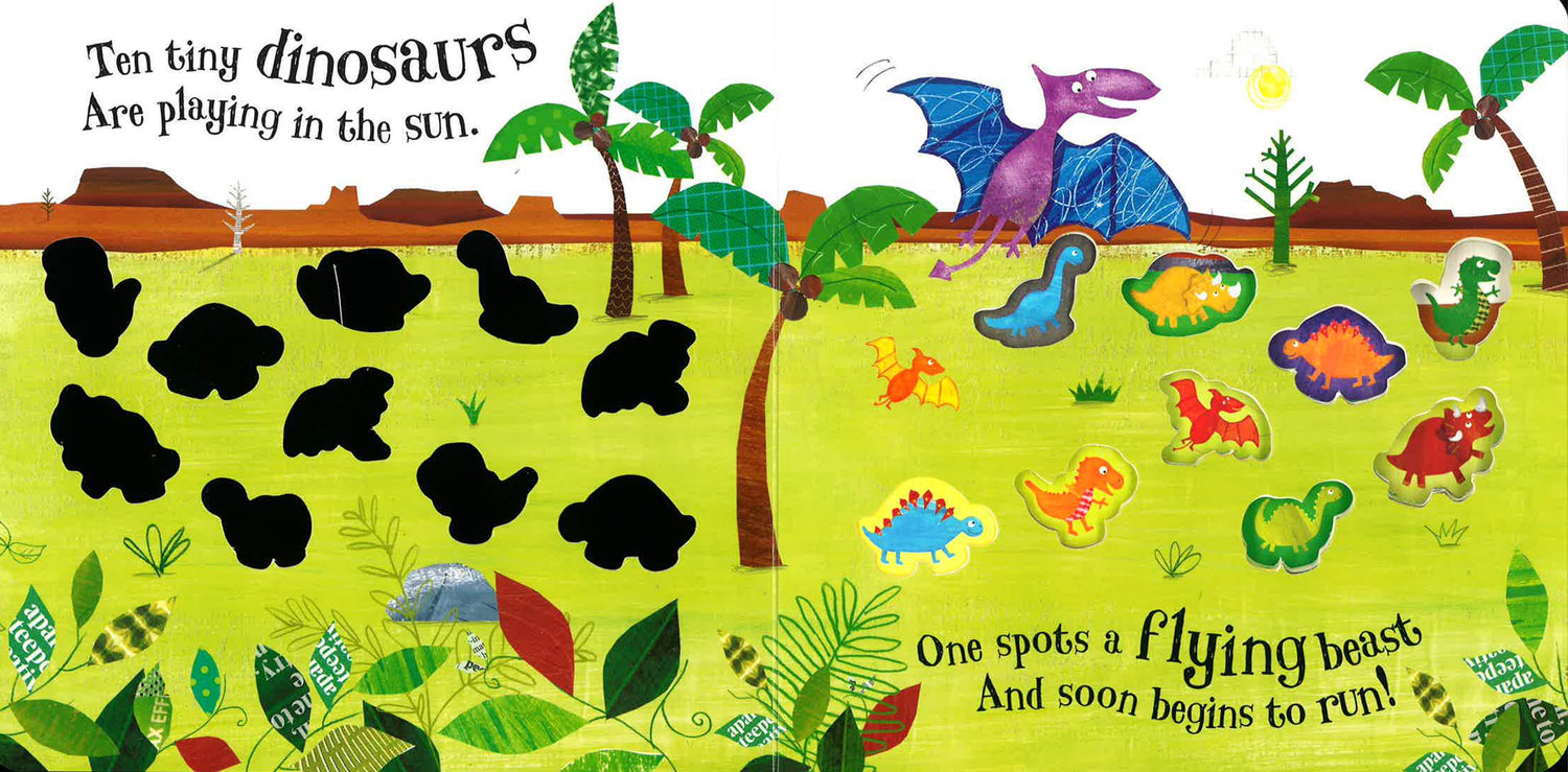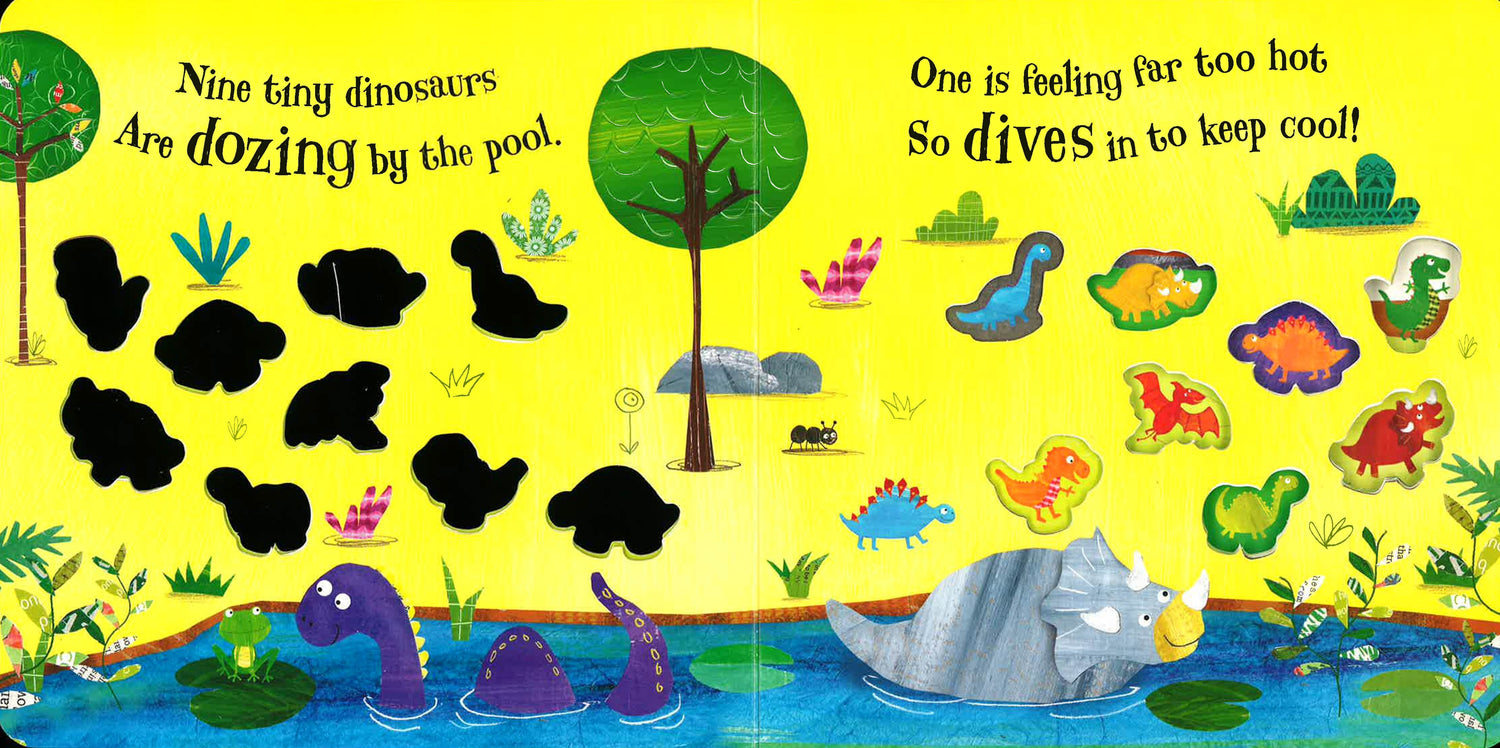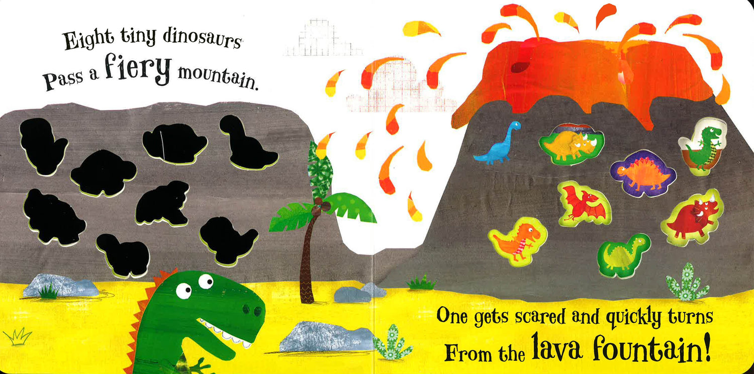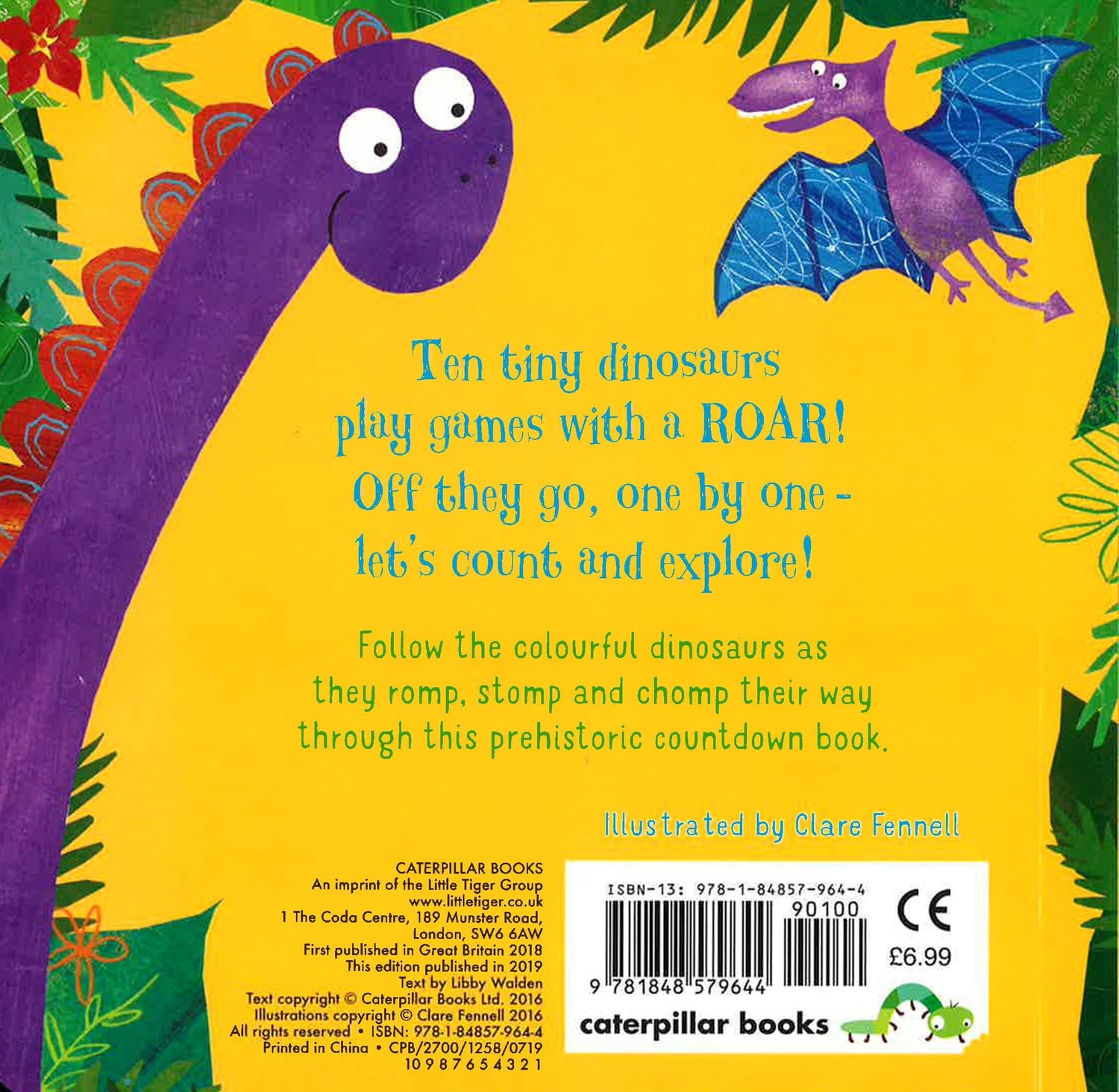 Ten tiny dinosaurs play games with a ROAR! Off they go, one by one - let's count them and explore!