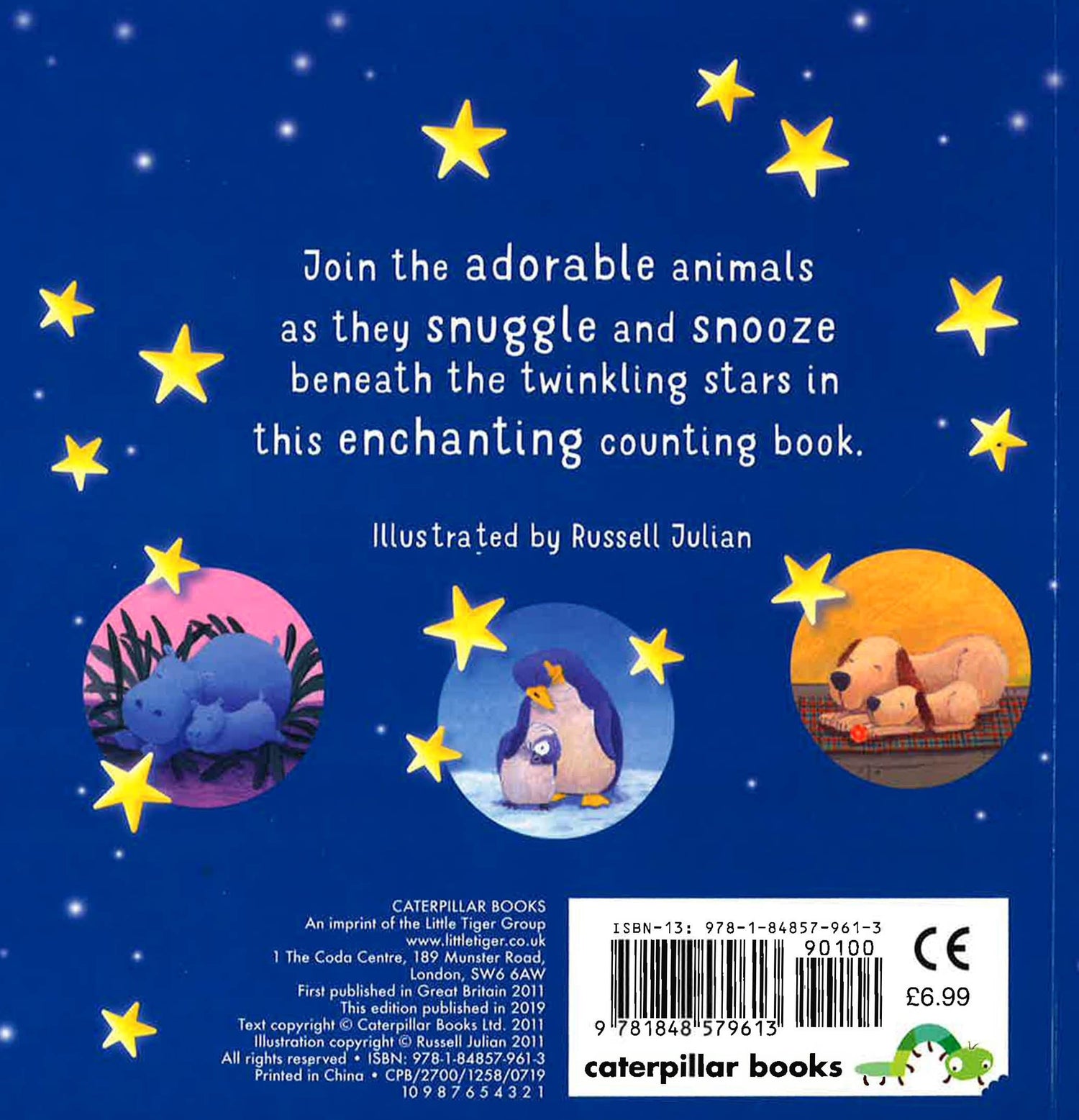 This fantastic counting book with a sweet night-time story is perfect for parents to read with their toddlers before nap time or bedtime. As night falls around the world, count the twinkly stars as one-by-one they disappear over the sleepy animals' heads. A fantastic book for toddlers learning first numbers, Ten Twinkly Stars will help children learn to count down from ten as each sleepy animal goes to bed. With shiny stars that little fingers will love to feel as they count down. As each page turns one less star is visible helping to illustrate the concept of counting down.