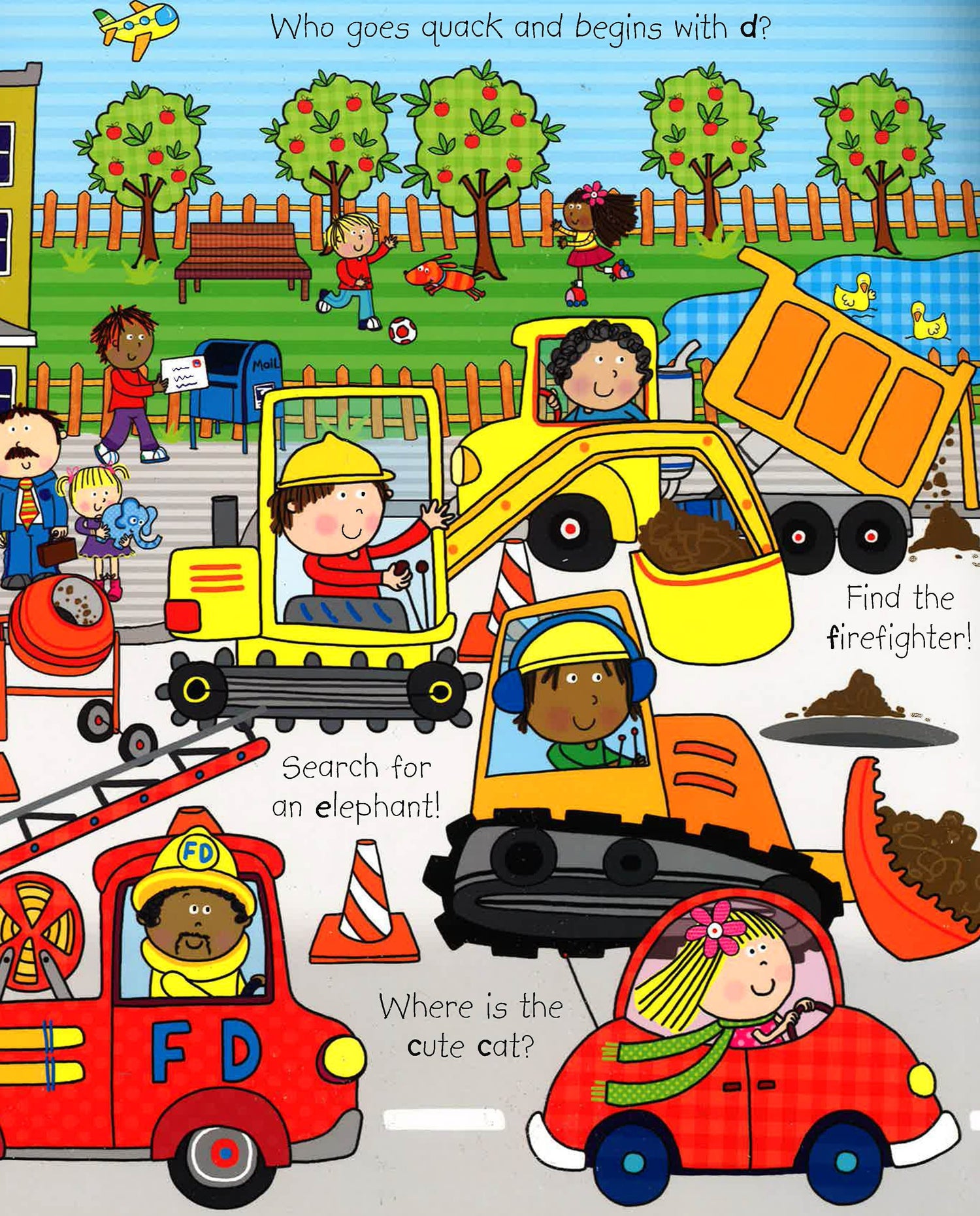 Let's search for first words! Have fun exploring this big, busy book, with words to find for each letter of the alphabet.