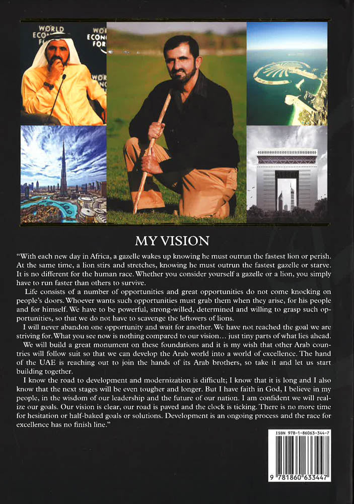 My Vision: Challenges in the Race for Excellence is a unique book in which His Highness Sheikh Mohammed bin Rashid Al Maktoum, Vice-President and Prime Minister of the United Arab Emirates and Ruler of Dubai, examines aspects of the UAE’s unique development experience. This young country is making every effort to achieve excellence and upgrade its status from a regional economic centre into an international hub. It is striving to excel in services, tourism, the knowledge economy and creative human resources in order to reach its ambitious development goals. While addressing the people of Dubai and the UAE, Sheikh Mohammed’s wider audience also includes the Arab world. Dubai’s unique development experience sets a creative example for the Arab world to follow. The book, therefore, represents a message of optimism that if all the constituents of any given society agree to excel in all fields, different cultures and religions can coexist without the slightest problem. The proof he provides is Dubai itself. Key Features Follows the tremendous success of its Arabic version, published in 2006. My Vision is an authentic historical document, which testifies to the perceptive quality of Sheikh Mohammed’s vision. The advice and model presented in this valuable work will be useful not only to the leaders of nations, but also all those who yearn for success. About the Author His Highness Sheikh Mohammed bin Rashid Al Maktoum, the Vice President and Prime Minister of the UAE, and Ruler of Dubai, is recognized by leaders and citizens across the globe as a visionary leader, an exemplary political figure, a sportsman par excellence and a magnificent public personality. Also a discerning and soulful poet, Sheikh Mohammed has previously published several poetry books, including Poems from the Desert (2009) and 40 Poems from the Desert (2011).