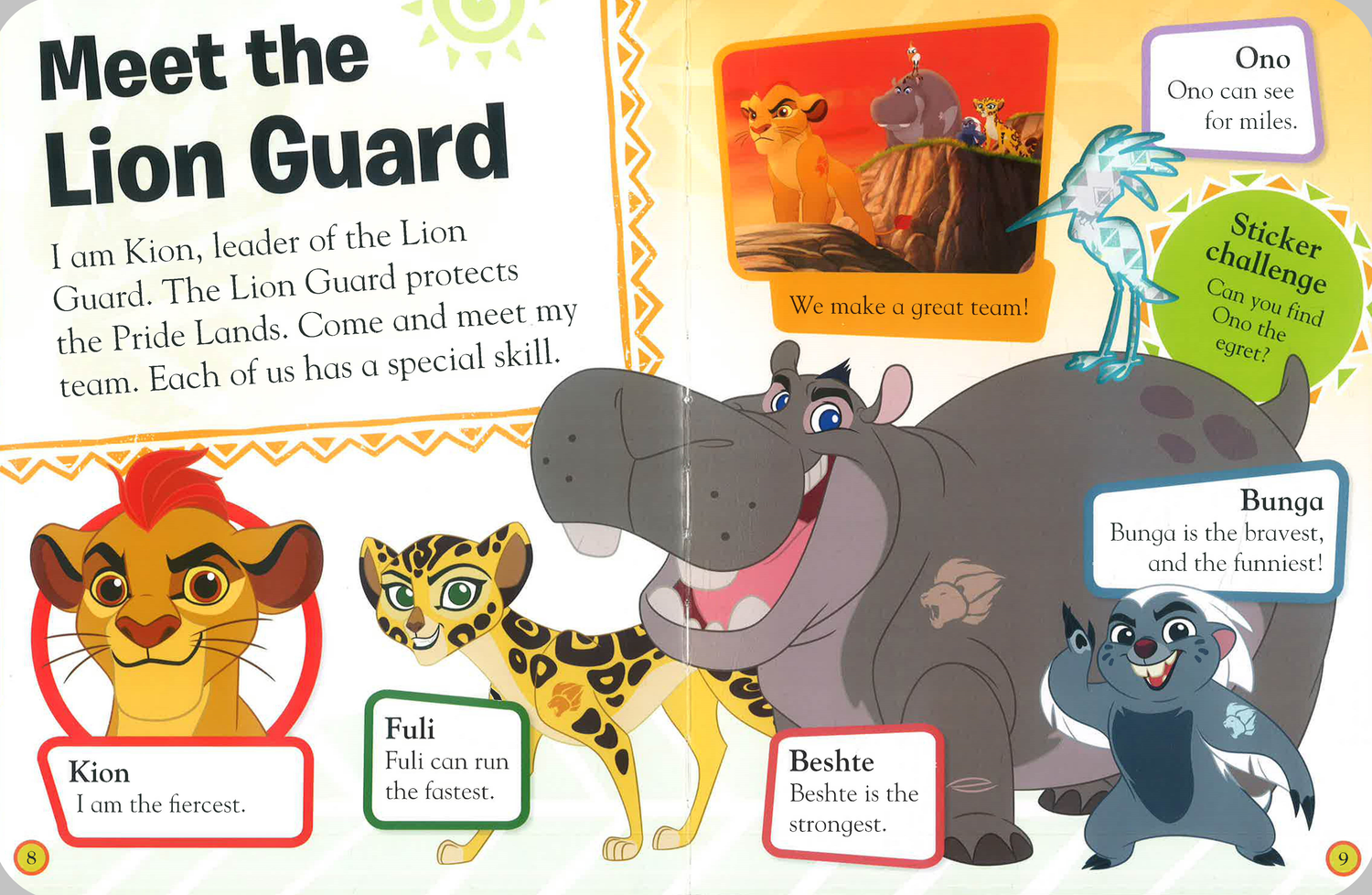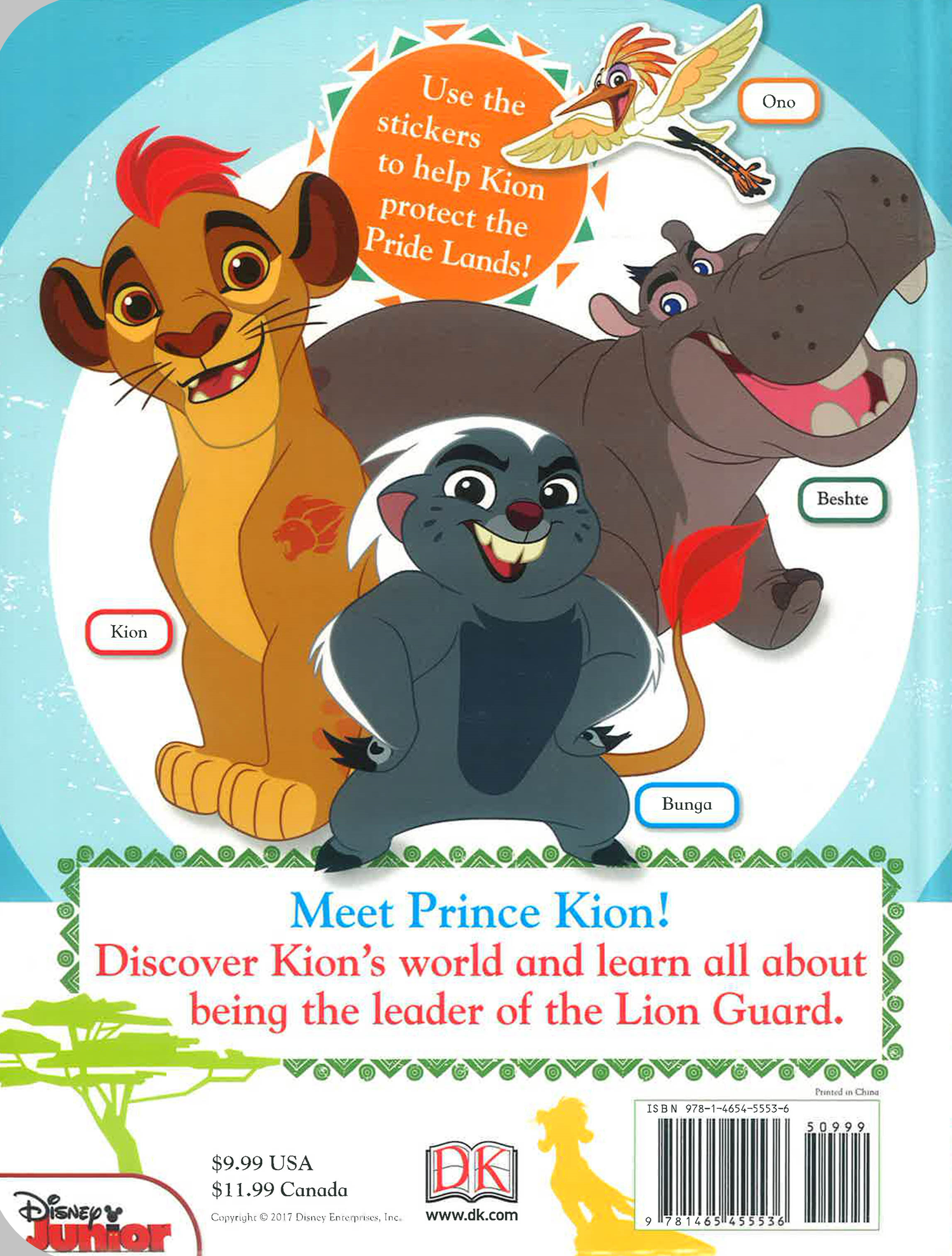 Meet Kion the lion cub—leader of the Lion Guard and son of Simba! This lively new series continues the story of Disney's much-loved movie The Lion King. Learn about Kion's cool friends and discover what it takes to be in the Lion Guard—a team of heroic animals who protect the Pride Lands. Using colorful images from the show and simple read-aloud text, DK's My World: The Lion Guard follows themes of teamwork, adventure, and diversity, and contains more than 100 stickers.