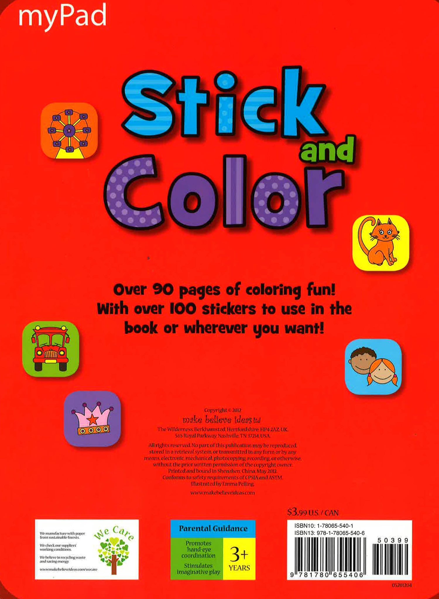 Introducing exciting new coloring books for children who love all things creative. This is a brilliant new range of coloring books, with a page stuffed full of great stickers for curious kids. Bursting with imaginative outlines for children to shade, these coloring books will keep little ones entertained for hours. The sticker page at the front can be used either in the book or anywhere else. Bold outlines will inspire children to be creative and improve their motor skills.