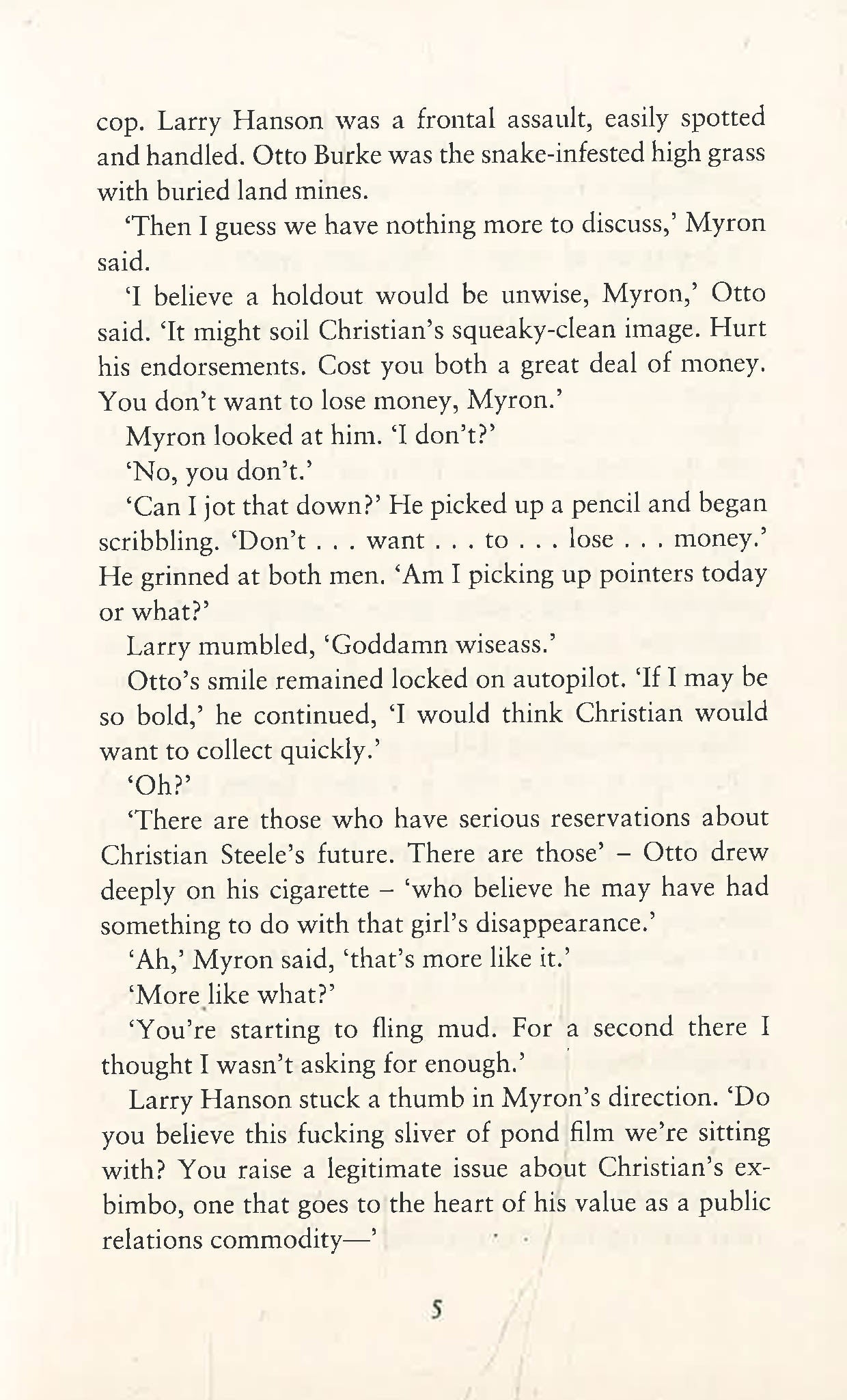 Sports agent Myron Bolitar is poised on the edge of the big time. So is Christian Steele, a rookie quarterback and Myron’s prized client. But when Christian gets a phone call from a former girlfriend―a woman who everyone, including the police, believes is dead―the deal starts to go sour. Trying to unravel the truth about a family’s tragedy, a woman’s secret, and a man’s lies, Myron is up against the dark side of his business―where image and talent make you rich, but the truth can get you killed.