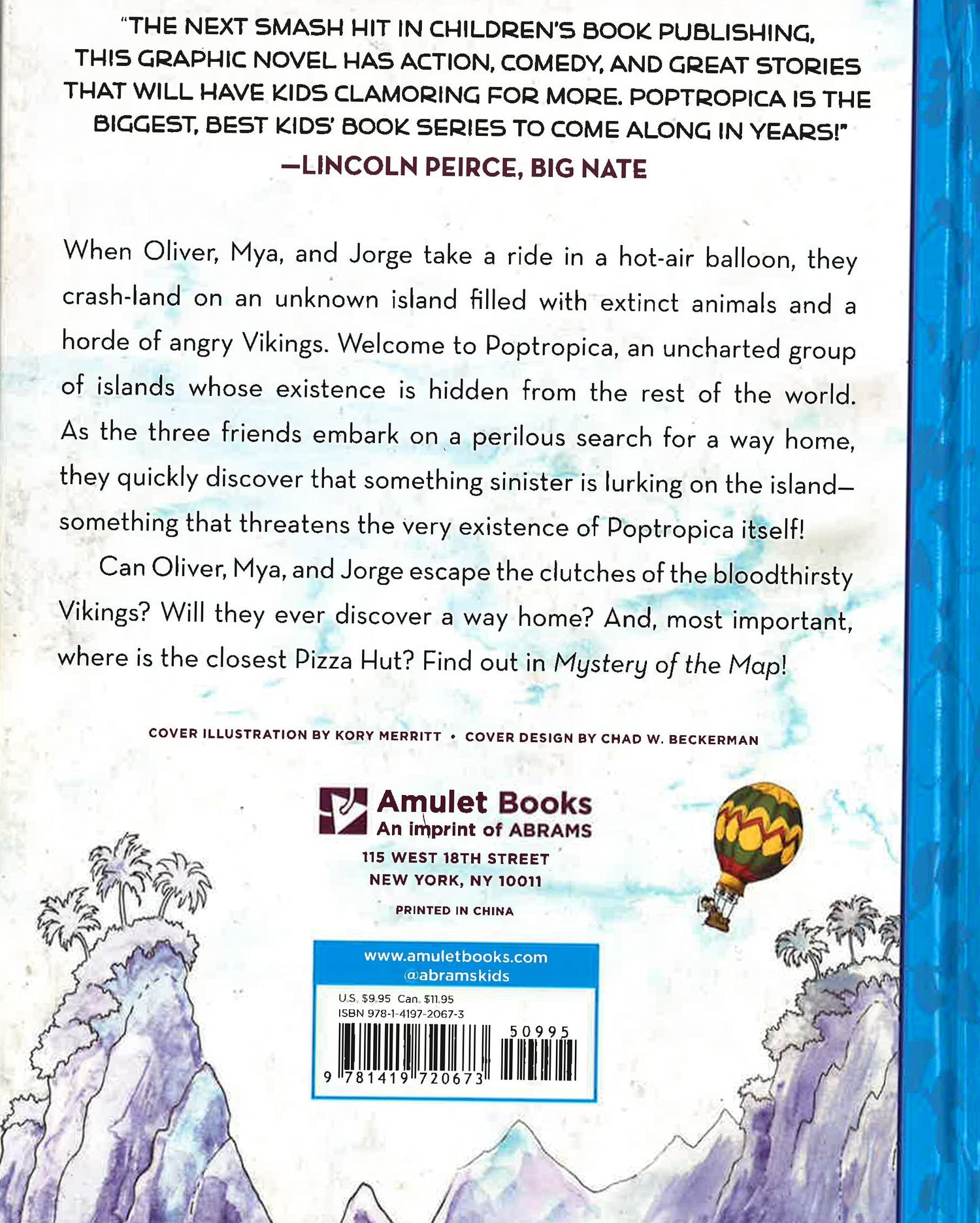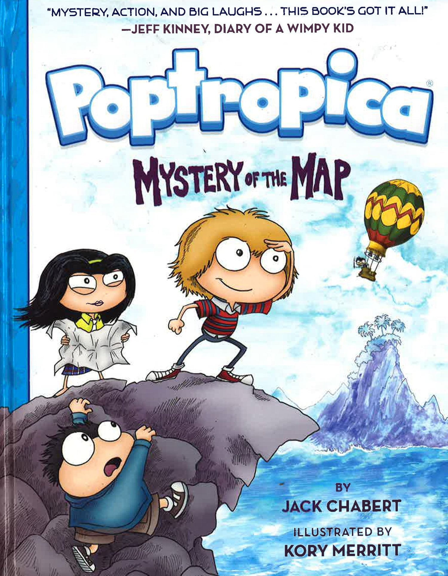 Based on a concept by Wimpy Kid author Jeff Kinney comes Poptropica, a brand-new graphic novel adventure series by Jack Chabert and Kory Merritt. In Mystery of the Map, Oliver, Mya, and Jorge take a ride in a hot-air balloon, only to crash-land on an unknown island filled with extinct animals and a horde of angry Vikings. Welcome to Poptropica, an uncharted group of islands whose existence is hidden from the rest of the world. As the three friends embark on a perilous search for a way home, they quickly discover the shocking reason they were brought there-something that threatens the very existence of Poptropica and their ability to ever make it off the island!