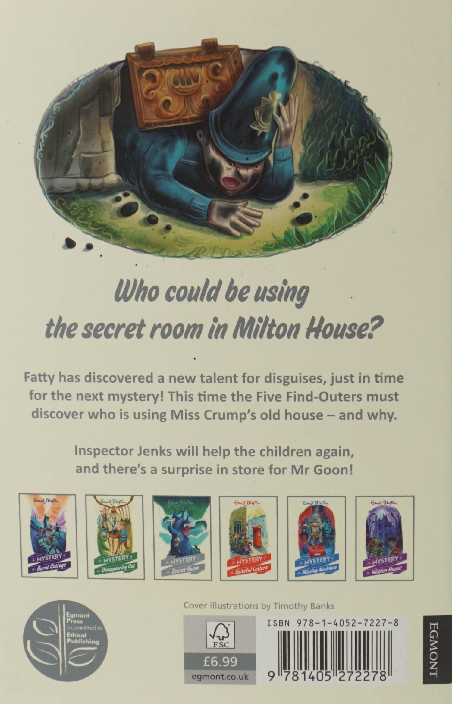 This is a fantastic children's crime story from the world's best-loved children's author, Enid Blyton. Fatty has discovered an amazing talent for disguise. He fools everyone with his French student act - even Mr Goon! But when Pip discovers a secret room in Milton House, the children decide to investigate...What will they discover in The Mystery of the Secret Room? The Mystery series follows the adventures of 'The Five Find Outers' - Pip, Bets, Larry, Daisy and Fatty, as they solve the most unusual crime cases with the help of their dog Buster. Enid Blyton is arguably the most famous children's author of all time. Thanks to series such as The Wishing-Chair, The Faraway Tree, The Mysteries, The Famous Five and The Secret Seven, she has sold over 400 million books in more than 40 languages worldwide. Her Mysteries stories have charmed generations of children - and they are as popular today as they have ever been.