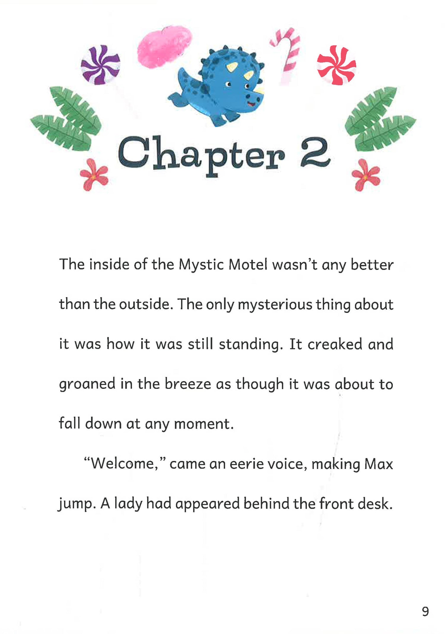 Max, his mum, and his sister Emily are going on holiday together... and Max is finally getting his own room! Things get even better when Max and Emily realise that the motel they're staying in is anything but ordinary. Max's door opens into a dinosaur paradise, and Emily's leads to Candy Land! Could this be the best holiday ever?