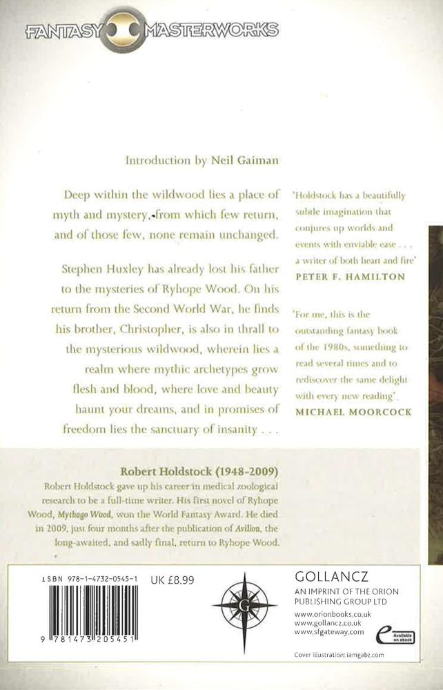 Stephen Huxley has already lost his father to the mysteries of Ryhope Wood. On his return from the Second World War, he finds his brother, Christopher, is also in thrall to the mysterious wood, wherein lies a realm where mythic archetypes grow flesh and blood, where love and beauty haunt your dreams, and in promises of freedom lies the sanctuary of insanity ...