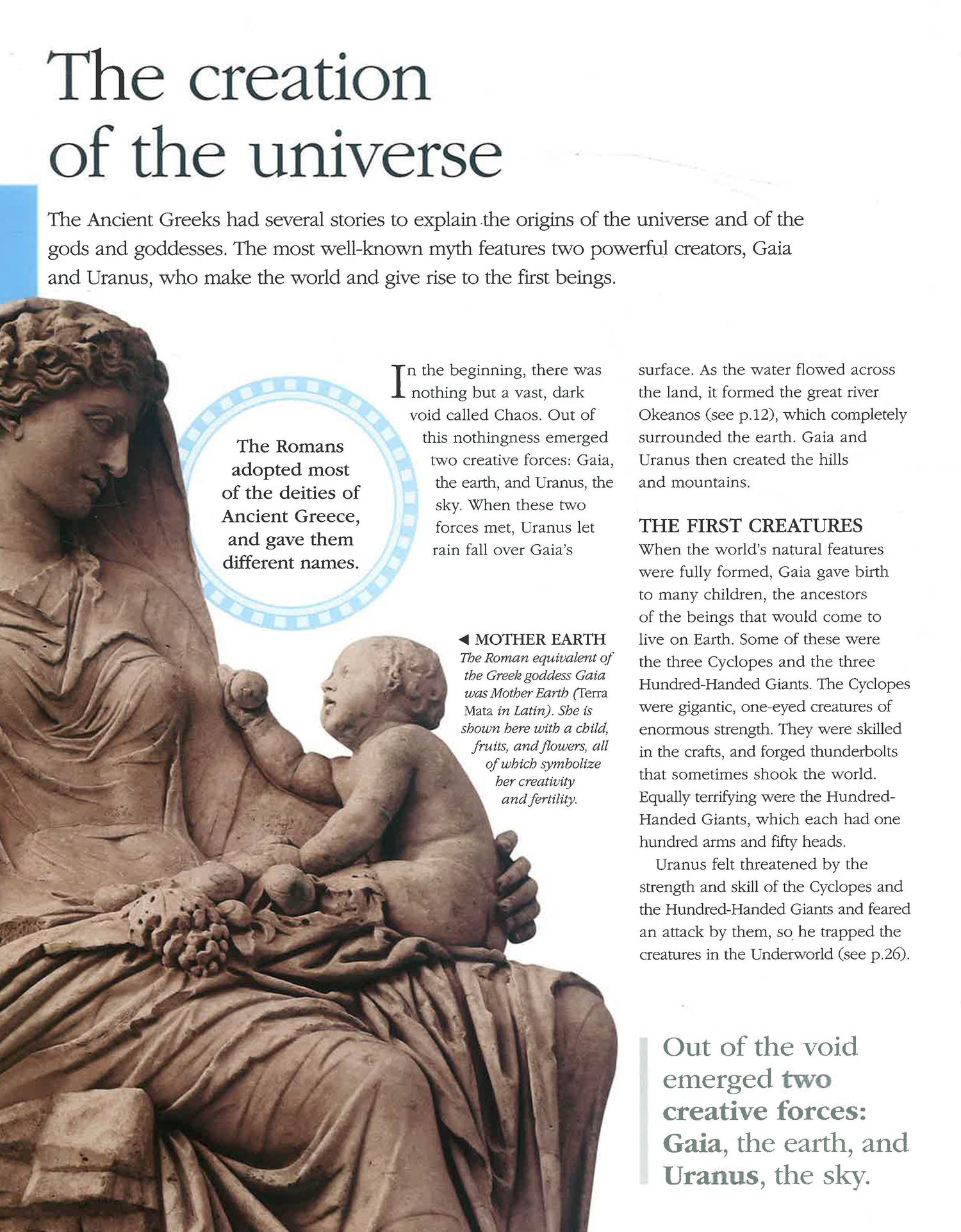 As well as offering the retellings themselves, Myths, Legends, and Sacred Stories: a visual encyclopedia investigates the meanings of these primal stories, examining why these tales have stood the test of time over thousands of years. Themed features draw together elements that are common to myths from all over the world, such as shapeshifters, mythical beasts, and magical weapons. Panels on modern retellings, such as Percy Jackson and The Little Mermaid, help to show why these myths are still relevant to our lives today.