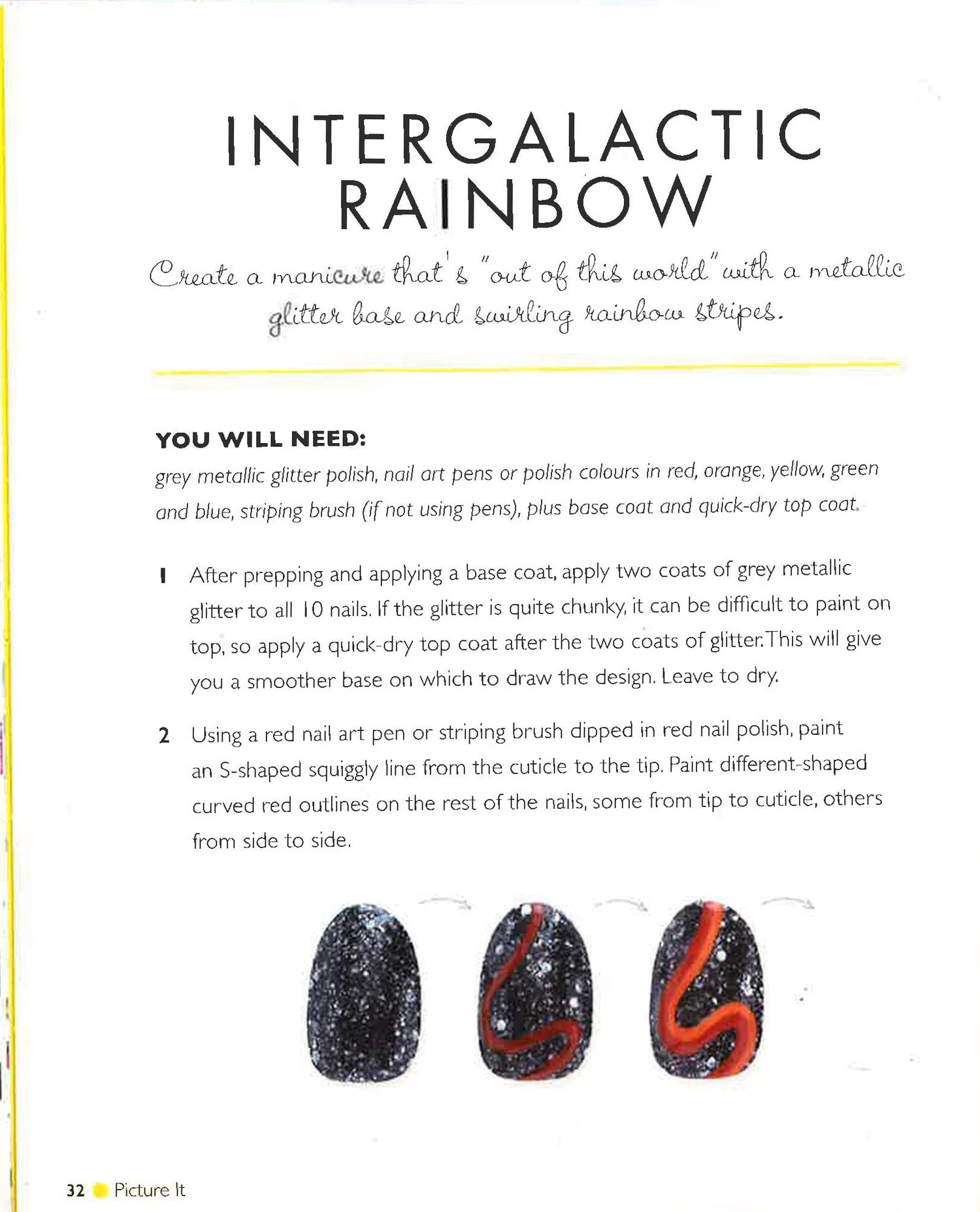 The book begins with an introduction to basic techniques, such as creating a flat base and working with colour and pattern, followed by instructions on achieving more complicated designs using special effects with glitter, jewels and 3D work. Practical advice is also given on how to work with various materials, such as stencils, wraps and stick-ons, and what to include in your own basic nail-art kit. Striking close-up photographs illustrate each of the 100 nail designs, which are divided into themed chapters: Diva; Pop Art; Glitter & Disco; Picture It; Rock Star; Dark Side; and, Haute Coat (inspired by catwalk trends).