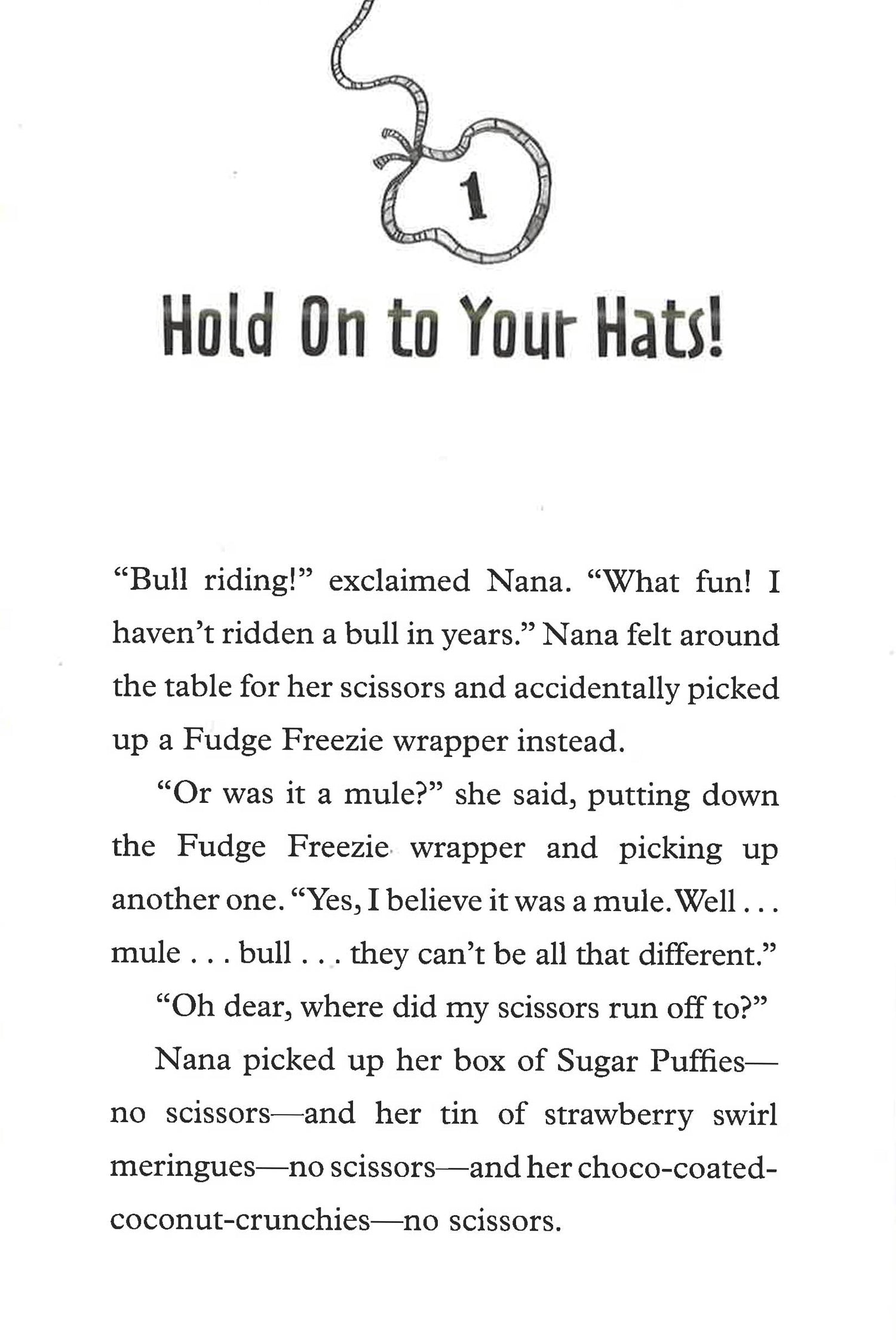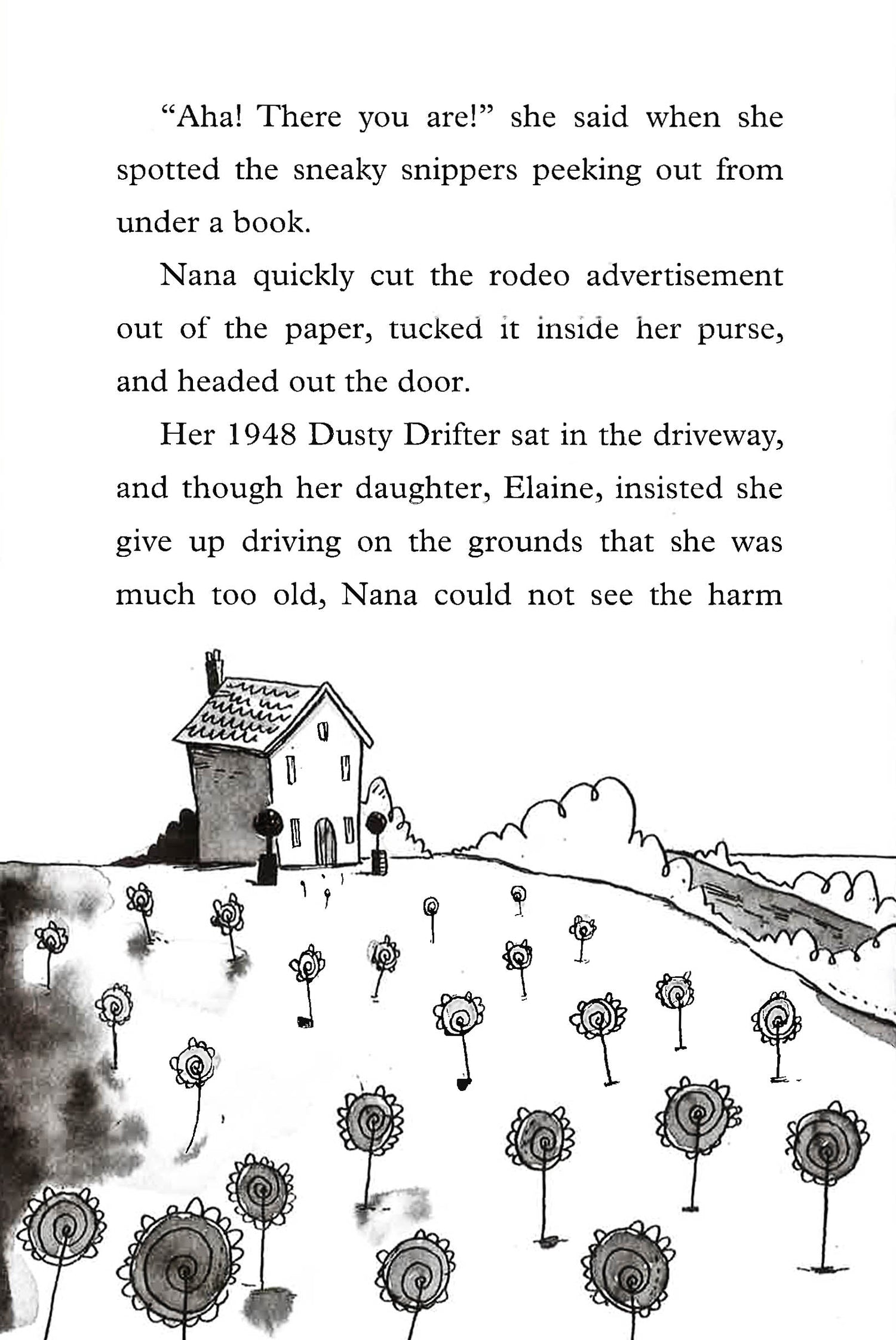 In this wacky follow-up to Nana Cracks the Case!, Nana decides she wants to go to the rodeo to become a bull rider. But a run-in with bad guys Tuff and the Ruffies spins her day in a new direction. Before you can say "yee-haw," Nana's grandchildren, Eufala and Bog, join in on the wild adventure.