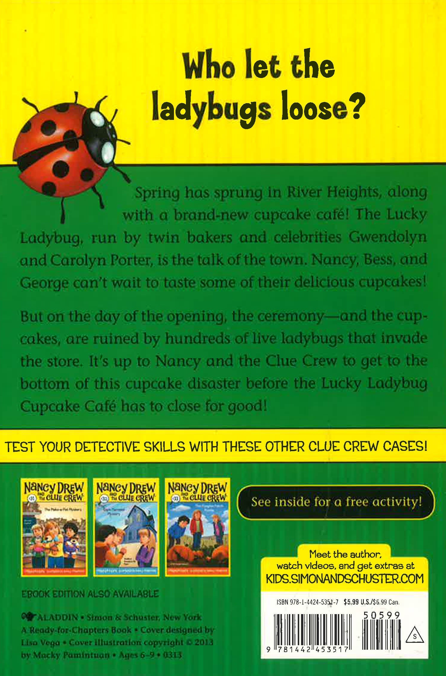 But on the day of the opening, the ceremony'and the cupcakes'are ruined by hundreds of live ladybugs that invade the store. It's up to Nancy and the Clue Crew to get to the bottom of this cupcake disaster before the Lucky Lady Bug Cupcake Café has to close for good!