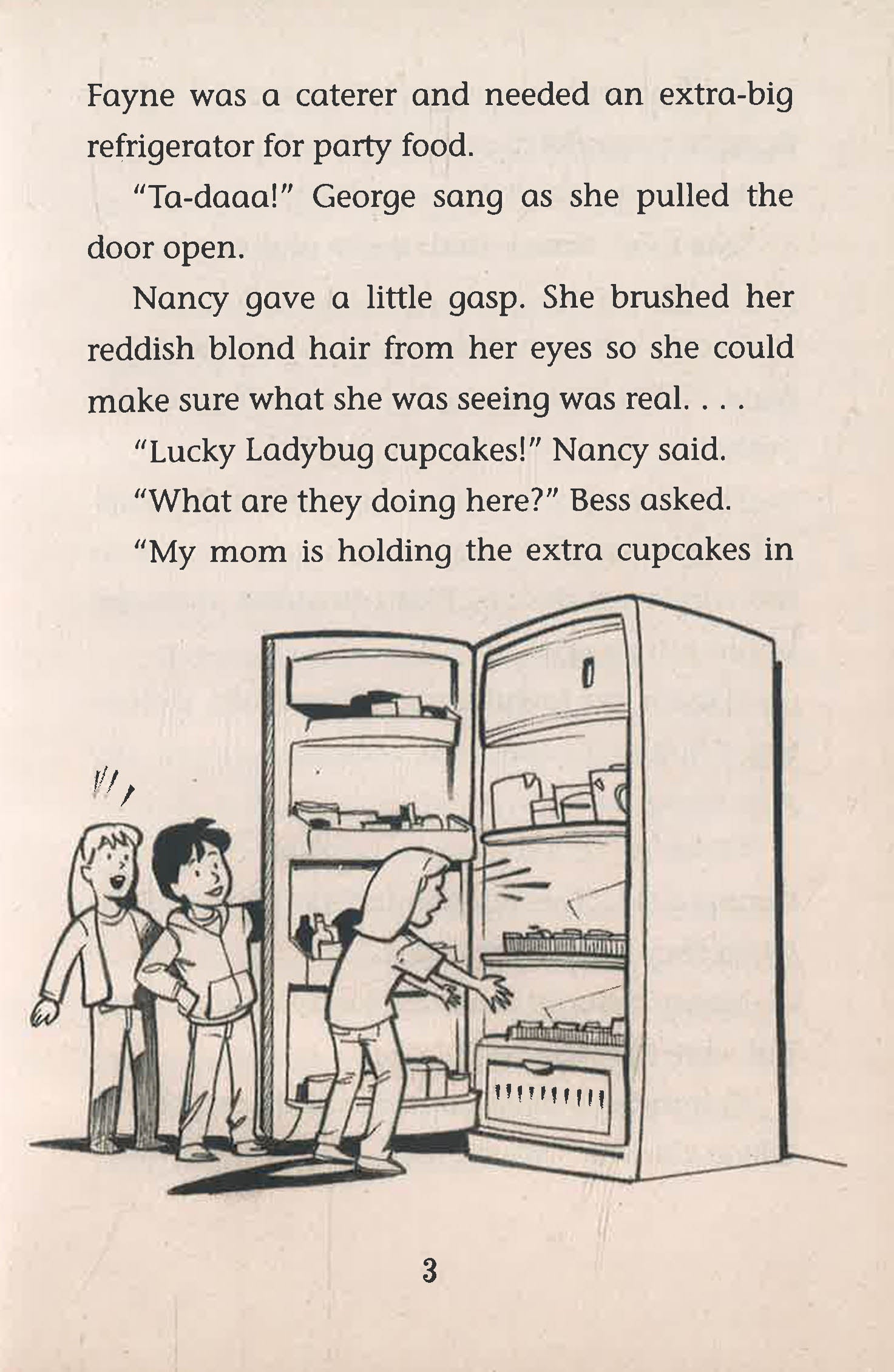Spring has sprung in River Heights, along with a brand-new cupcake café! The Lucky Ladybug, run by twin bakers and celebrities Gwendolyn and Carolyn Porter, is the talk of the town. Nancy, Bess, and George can't wait to taste some of the delicious cupcakes!