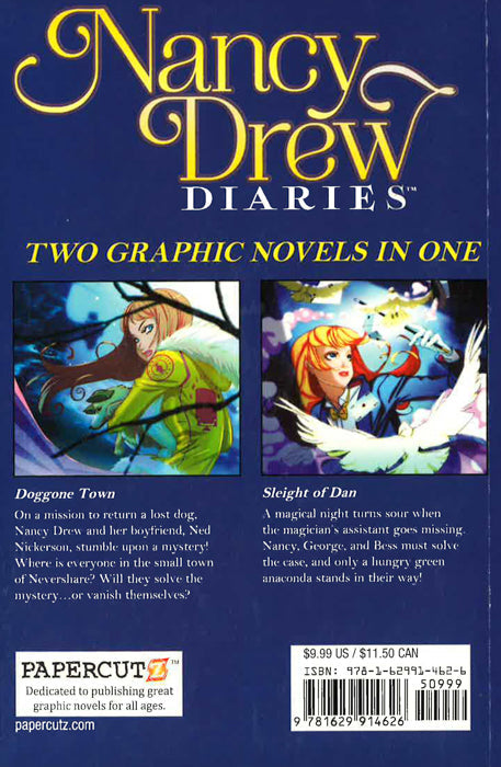 Two Nancy Drew mysteries! In "Doggone Town," Nancy and Ned investigate the mysterious disappearance of the entire population of a town, and Nancy finds a new pet. In "Sleight of Dan," Nancy solves the mystery of a missing magician's assistant, while avoiding the jaws of a hungry green anaconda.