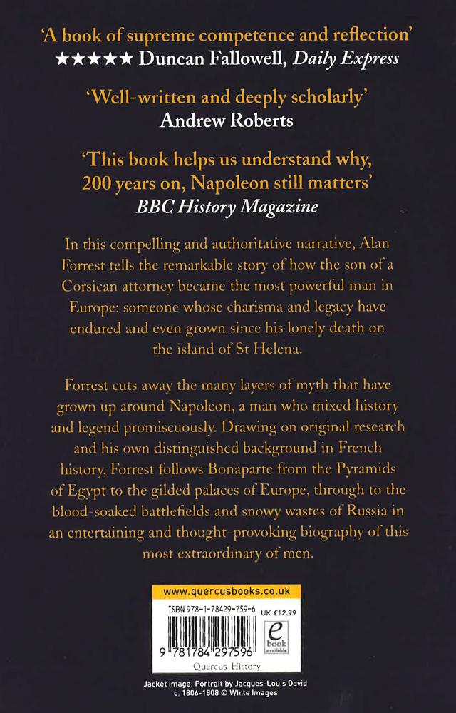 On a cold December day in 1840 Parisians turned out in force to watch as the body of Napoleon was solemnly carried on a riverboat from Courbevoie on its final journey to the Invalides. In this book Alan Forrest tells the remarkable story of how the son of a Corsican attorney became the most powerful man in Europe: a man whose charisma and legacy have endured since his lonely death on the Island of St Helena. Forrest cuts away the many layers of myth that have grown up around Napoleon, a man who mixed history and legend promiscuously. Drawing on original research and his own distinguished background in French history, Forrest undercuts the 'Great Man' theory of history to demonstrate that Napoleon was as much a product of his times as he was their creator.