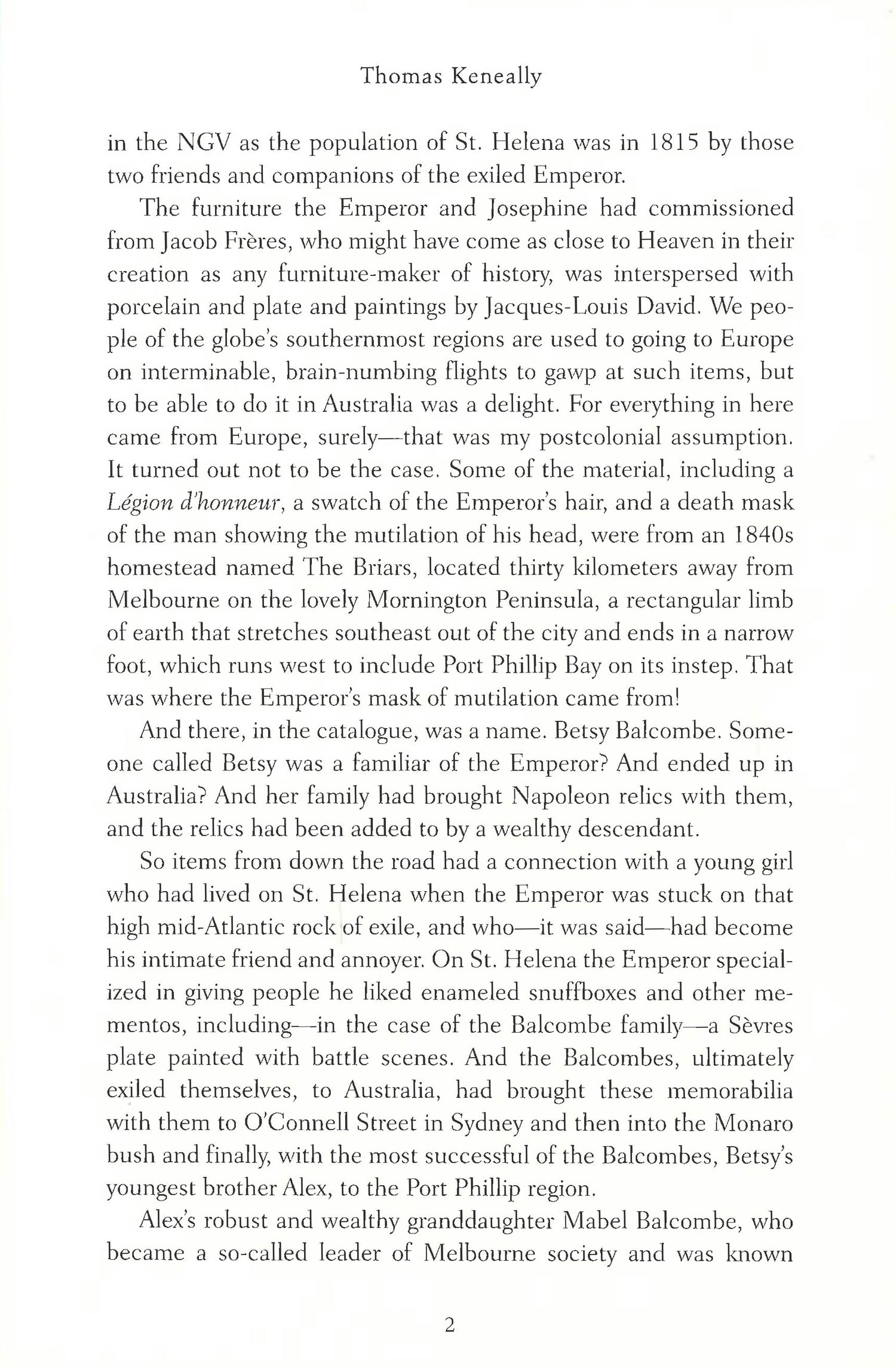 The bestselling author of Schindler's List and The Daughters of Mars returns with a remarkable novel about the friendship between a quick-witted young woman and one of history's most intriguing figures, Napoleon Bonaparte, during the final years of his life in exile on St. Helena--hailed by the New York Times Book Review as "insightful and nimble...consistently fresh and engaging...call[ing] to mind the giants of 19th century fiction." In October 1815, after losing the Battle of Waterloo, Napoleon Bonaparte was banished to the island of Saint Helena. There, in one of the most remote places on earth, he lived out the final six years of his life. On this lonely island with no chance of escape, he found an unexpected ally: a spirited British girl named Betsy Balcombe who lived on the island with her family. While Napoleon waited for his own accommodations to be built, the Balcombe family played host to the infamous exile, a decision that would have devastating consequences for them all. In Napoleon's Last Island, "master of character development and period detail" (Kirkus Reviews) Thomas Keneally recreates Betsy's powerful and complex friendship with the man dubbed The Great Ogre, her enmities and alliances with his remaining courtiers, and her dramatic coming-of-age. Bringing a shadowy period of history to life with a brilliant attention to detail, Keneally tells the untold story of one of Europe's most enigmatic, charismatic, and important figures, and the ordinary British family who dared to forge a connection with him.