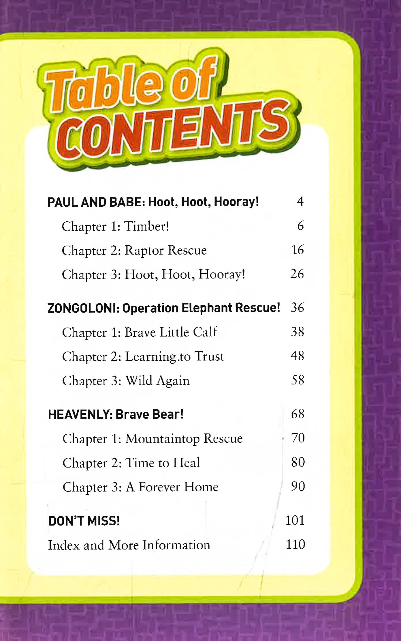 Meet some brave, amazing animals and the caring people who come to their rescue. Filled with engaging photos, fast facts, and fascinating sidebars, readers won't want to put this book down. National Geographic Kids Chapter books pick up where the best-selling National Geographic Readers series leaves off, offering young animal lovers who are ready for short chapters lively, exciting, full-color true stories—just right to carry in backpacks, share with your friends, and read under the covers at night.