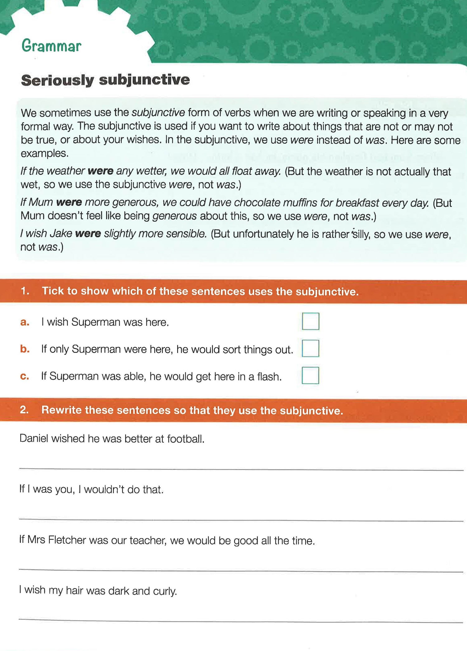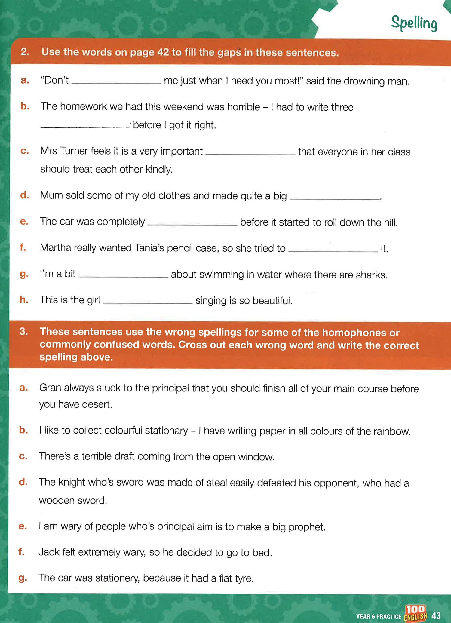 This book can help your child by providing a whole year of ready to go activities and support on key English topics which will be being taught in school from 2014. Did you know that your child in Year 6 will now need to; spell words with silent letters (such as 'island'); use the subjunctive (using 'were' and 'be' to say things that may or may not be true or about wishes, for example: 'If I were Prime Minister I would make weekends longer' but you're not the Prime Minister so you can't); use expanded noun phrases to convey complicated information concisely.