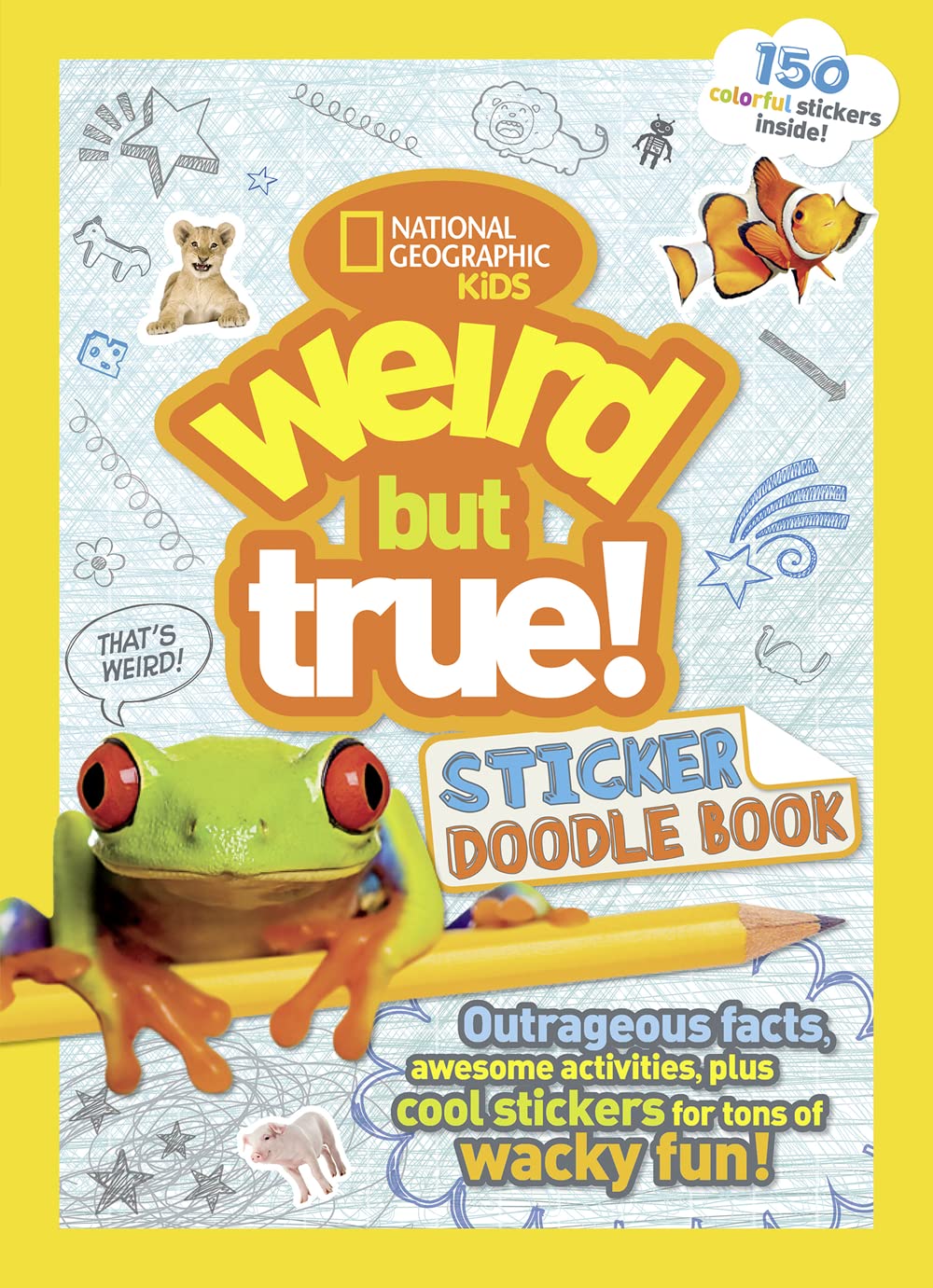 Grab a pencil and put on your Weird but True hat! It's time to explore our amazing and very weird world with the newest spin-off of the Weird but True series, where YOU get to illustrate just how strange and cool our world can be. Discover amazing weird facts and then doodle, draw, or color a strange scene right on the page. Did you know that giraffes only need to sleep 90 minutes a day? Well, that might make a totally fun sleepover. Did you know that there's a town in France that holds a pig festival every year? Doodle some funny outfits onto those pigs! Enhance your wacky masterpieces with 150 fun stickers, included in the book. It’s a great new way to play and the perfect boredom-buster for rainy days or car rides.