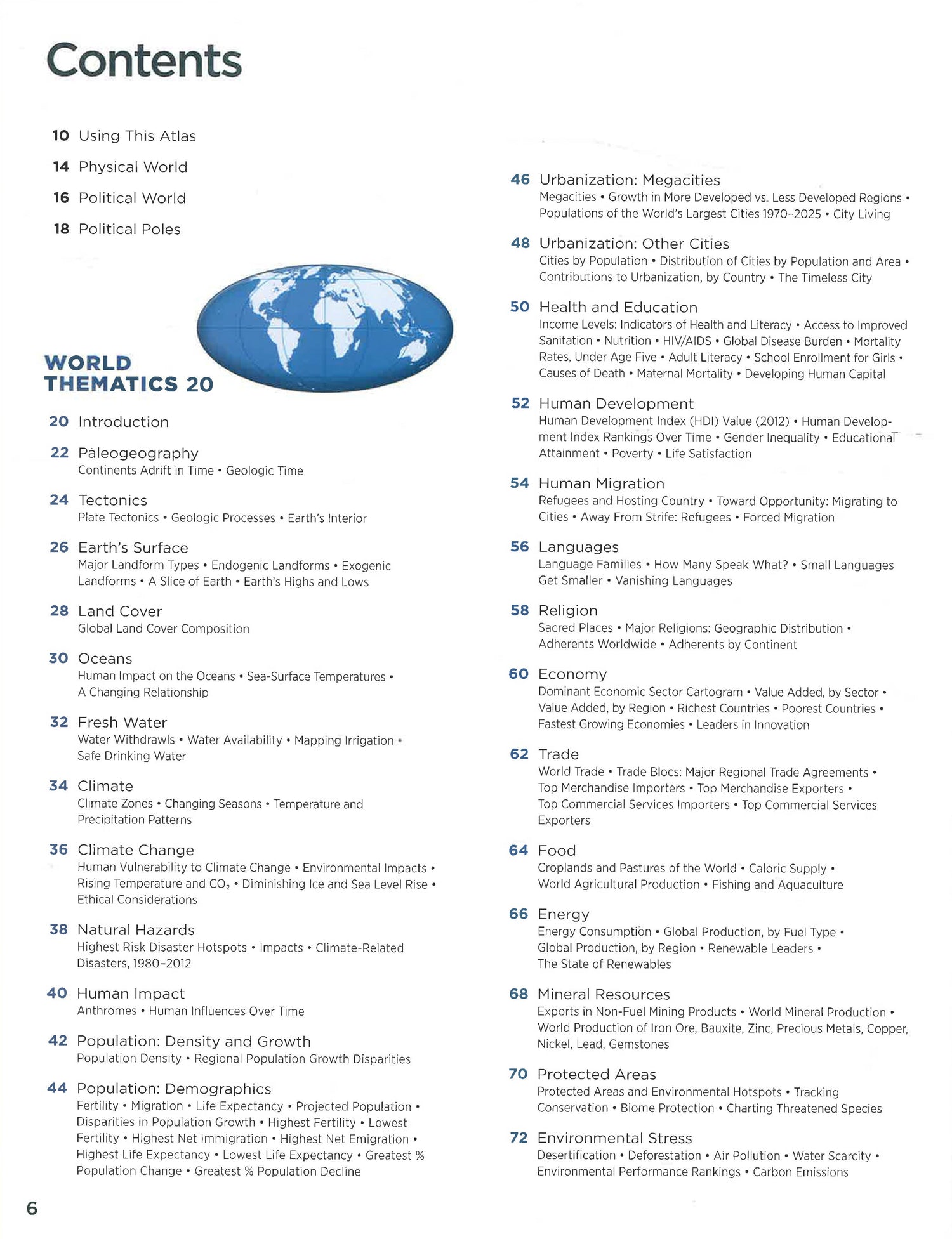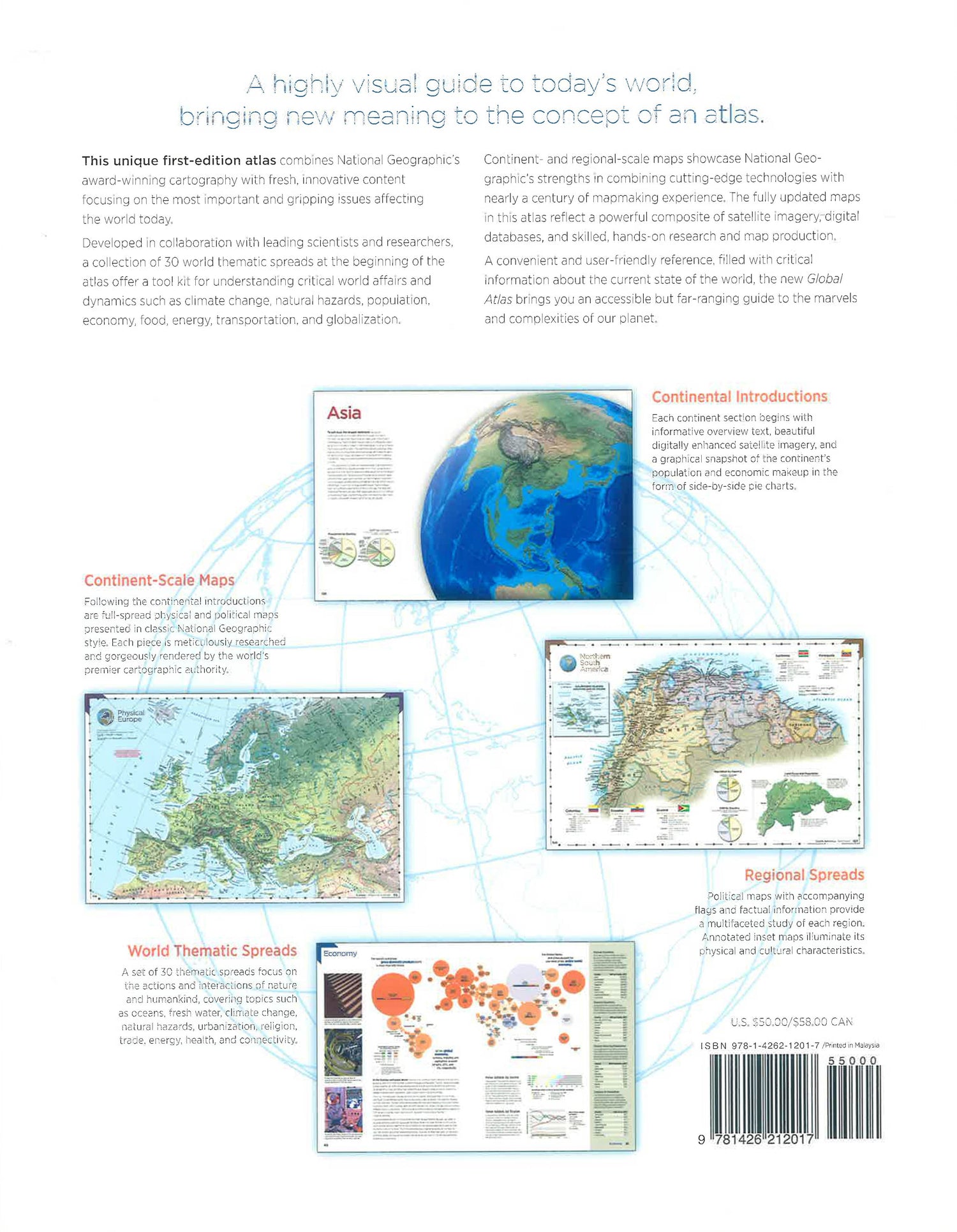 From the changing shape of the warming northern polar region to the southern end of the globe in Antarctica, this atlas offers extraordinary new cartographic coverage of the entire globe. Through state-of-the-art maps and cutting-edge graphic design, this completely updated atlas covers the latest geopolitical developments and illuminates the important trends that grip the planet. From new political maps that review areas of turbulent civil strife in the Middle East to thematic spreads that highlight freshwater scarcity, climate and global warming, population growth, and more, this innovative book addresses the world's challenges and celebrates its wonders. Filled with dynamic infographics and compelling annotations and captions, NATIONAL GEOGRAPHIC GLOBAL ATLAS documents the critical facts, developments, and trends of our ever-evolving human and natural landscape.