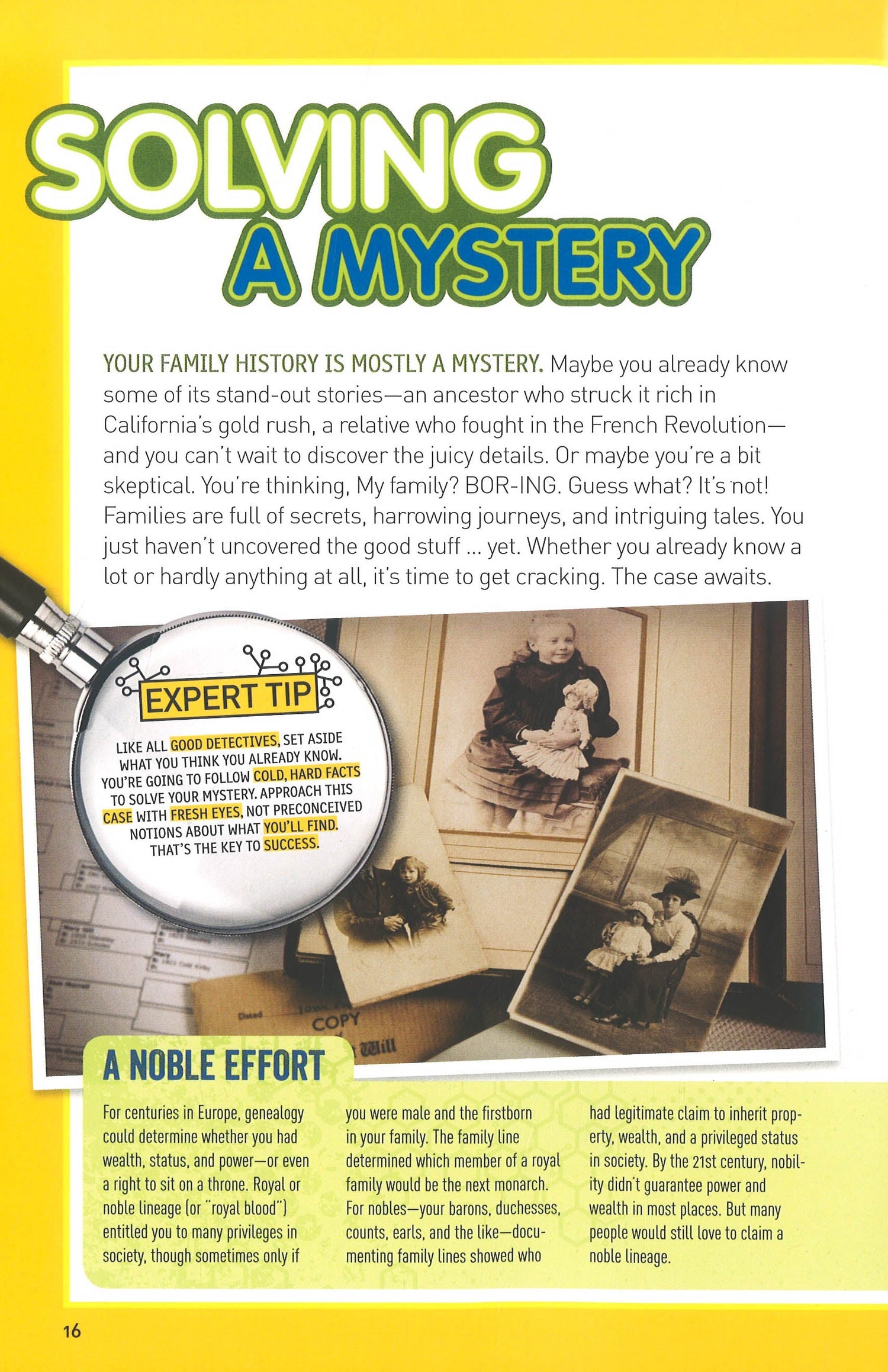 What does your family tree look like? Where do its roots lead? Are you related to royalty? Start your very own journey and find out with this activity-packed guide to genealogy! This lively guide will get you started on researching your family's past and let you in on the newest and most up-to-date technology for genealogy research. Get tips on how to interview family members, create a family tree, and much more. Fun facts, lists, and sidebars offer additional tips and bring the dusty past to vivid life!