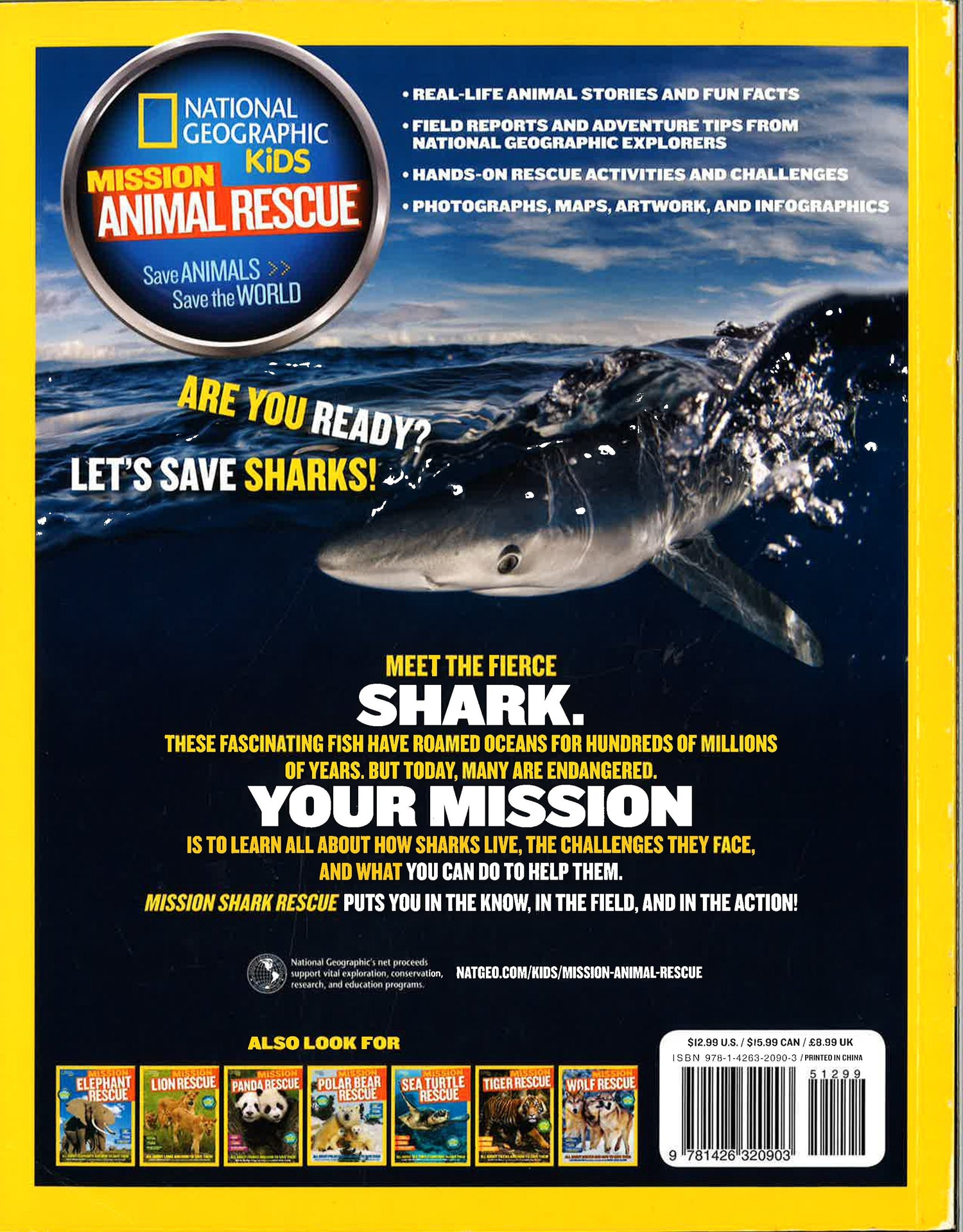 Inspiring young animal lovers to get up close to all different types of sharks and the real-life challenges they face is what Mission: Shark Rescue is all about.Inspiring young animal lovers to get up close to all different types of sharks and the real-life challenges they face is what Mission: Shark Rescue is all about. This compelling narrative combines fun and amazing adventure stories, gorgeous photography, hands-on activities, fascinating information, and more, connecting the reader in-depth with the animal's real world. Meet real-life sharks and learn about their habitats, challenges, and successes, plus learn how YOU can take action and save these amazing endangered creatures.The National Geographic Kid is curious about the world around them, empowered in the face of challenges and responsible for others and the natural world. Combining these principles with the international educational heritage of Collins, this partnership is a natural fit for books that are funny, weird, exploratory, educational and loved by children.