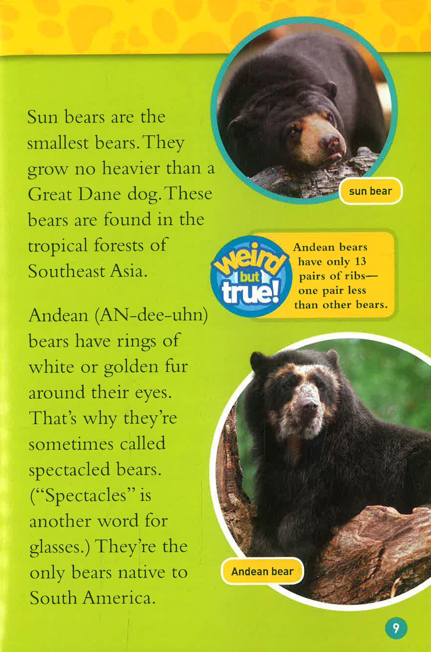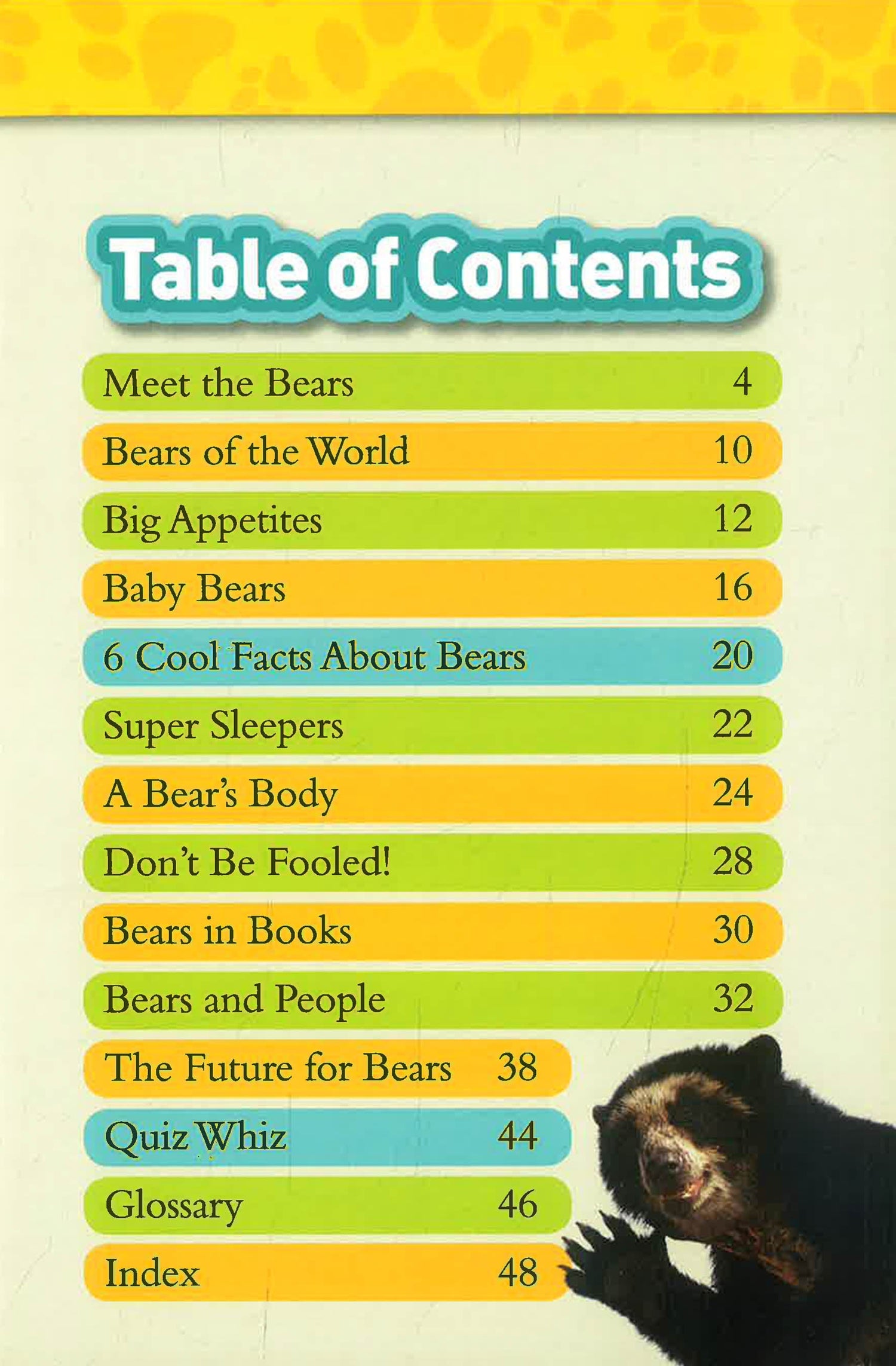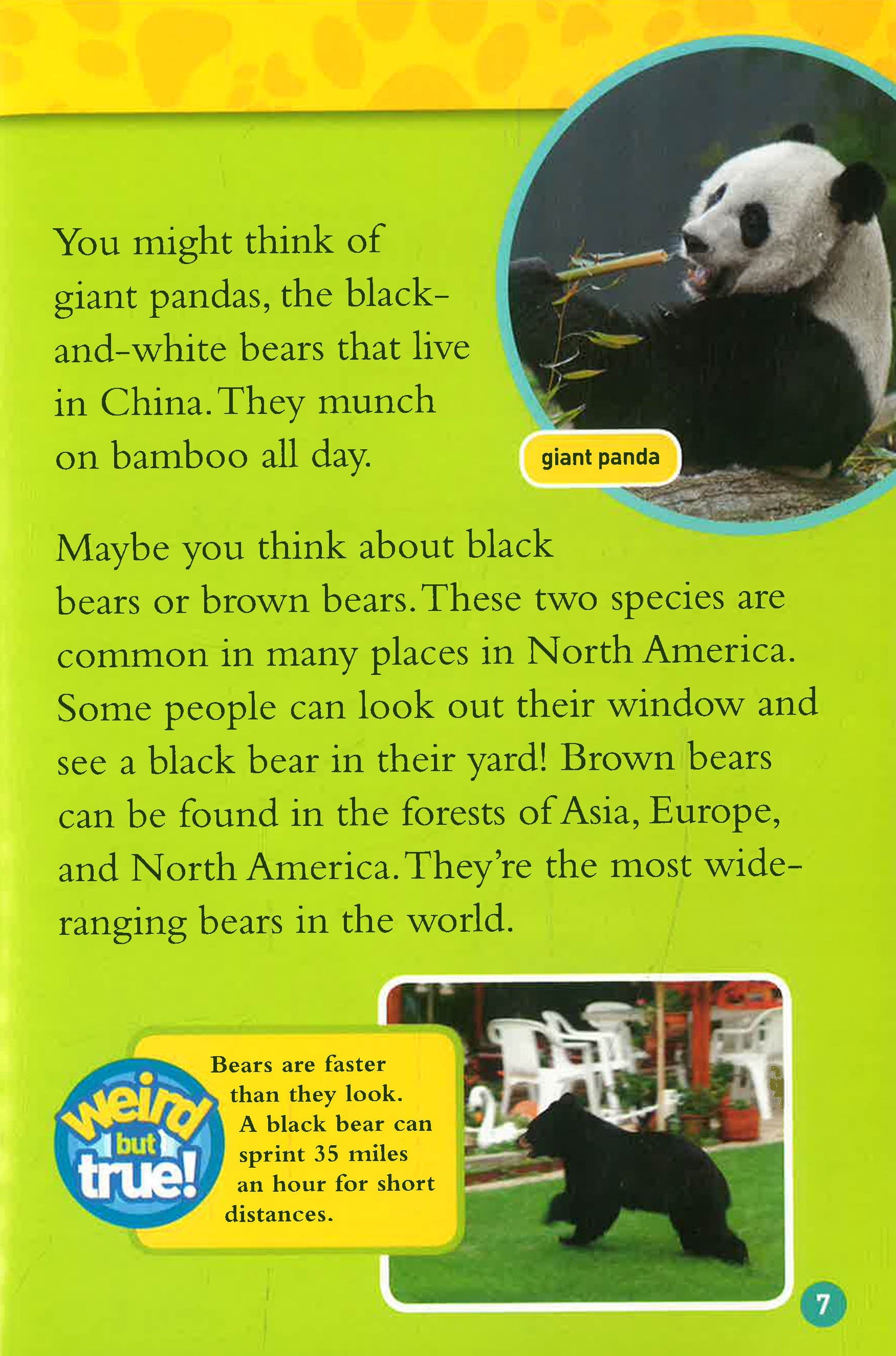 Get ready for a walk on the wild side in this image-packed book all about bears! Kids will learn about different kinds of bears, where they live, and what they do. This level 3 reader is written in an easy-to-grasp style to encourage the animal lovers of today and scientists of tomorrow!