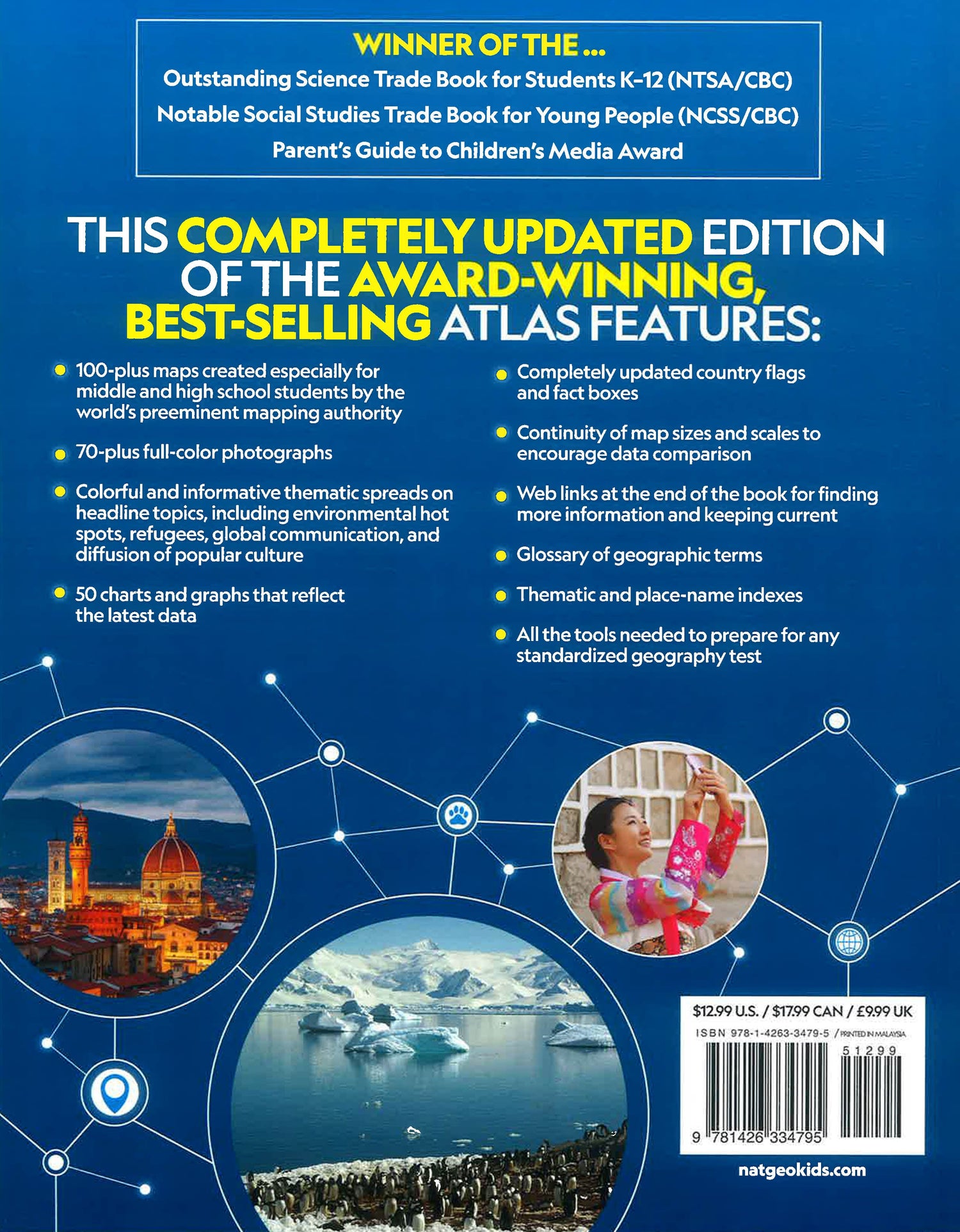 The new fifth edition of National Geographic's award-winning atlas is more fascinating and fact-filled than ever! It's the definitive atlas for middle and high-school students to explore and use in the classroom, college prep, and at home.