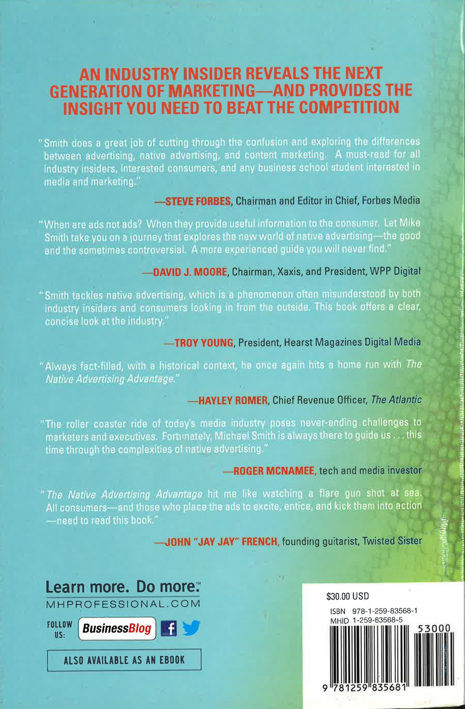 An ad tech exec at Hearst reveals the next generation of marketing-and provides the insight you need to use it to beat the competition The Native Advertising Advantage reveals why native content is an effective tool in any company's digital marketing strategy-and how to use it to build new revenue streams. The book explains how native ads are blending in with their surrounding content to blur the traditional "church/state" divide of editorial vs. advertising.The author shows how publications as diverse as BuzzFeed, Forbes, Cosmopolitan, and The New York Times are attracting readers who are just as interested in the content of these native ads as they are of journalist-written editorial content Rationales and hands-on techniques come directly from interviews with top marketing people at a broad cross-section of companies, including GE, Intel, HP, and ConAgra Foods. These leaders reveal how native advertising fits into their marketing mix and ad budget-and how it's paying off.