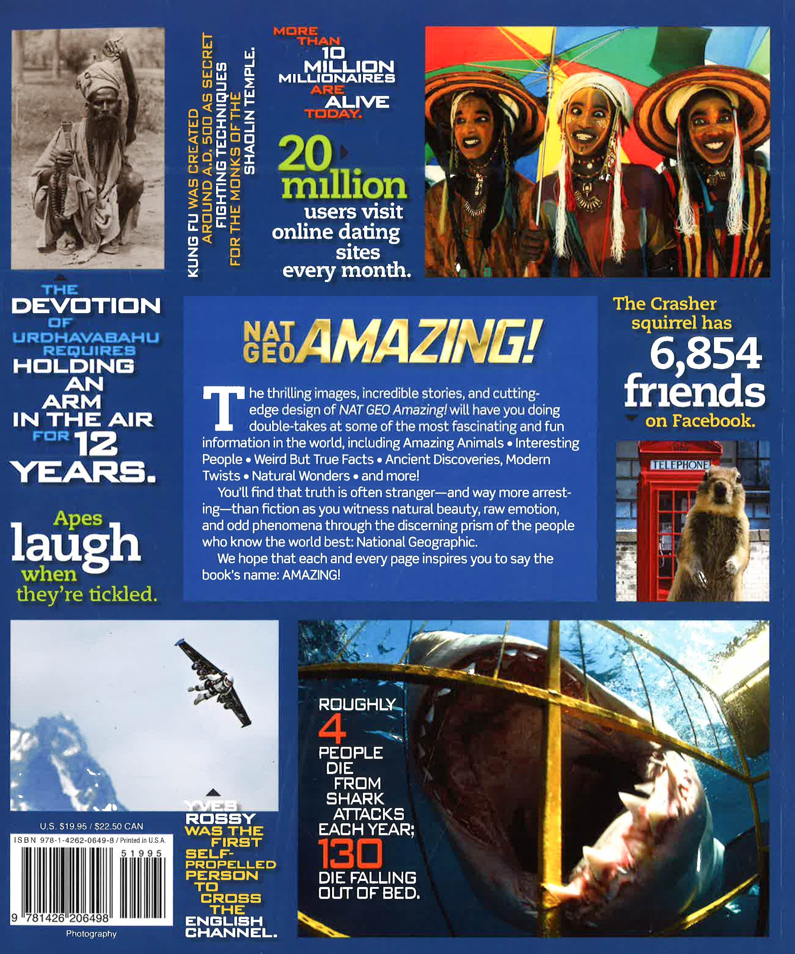 The thrilling images, incredibly stories, and cutting-edge design of NATGEO Amazing! will have you doing double-takes at some of the most fascinating and fun information in the world, including Amazing Animals, Interesting People, Weird But True Facts, Ancient Discoveries with Modern Twists, Natural Wonders, and more! You'll find that truth is often stranger-and way more arresting-than fiction as you witness natural beauty, raw emotion, and odd phenomena through the discerning prism of the people who know the world best: National Geographic. We hope that each and every page inspires you to say the book's name: AMAZING!