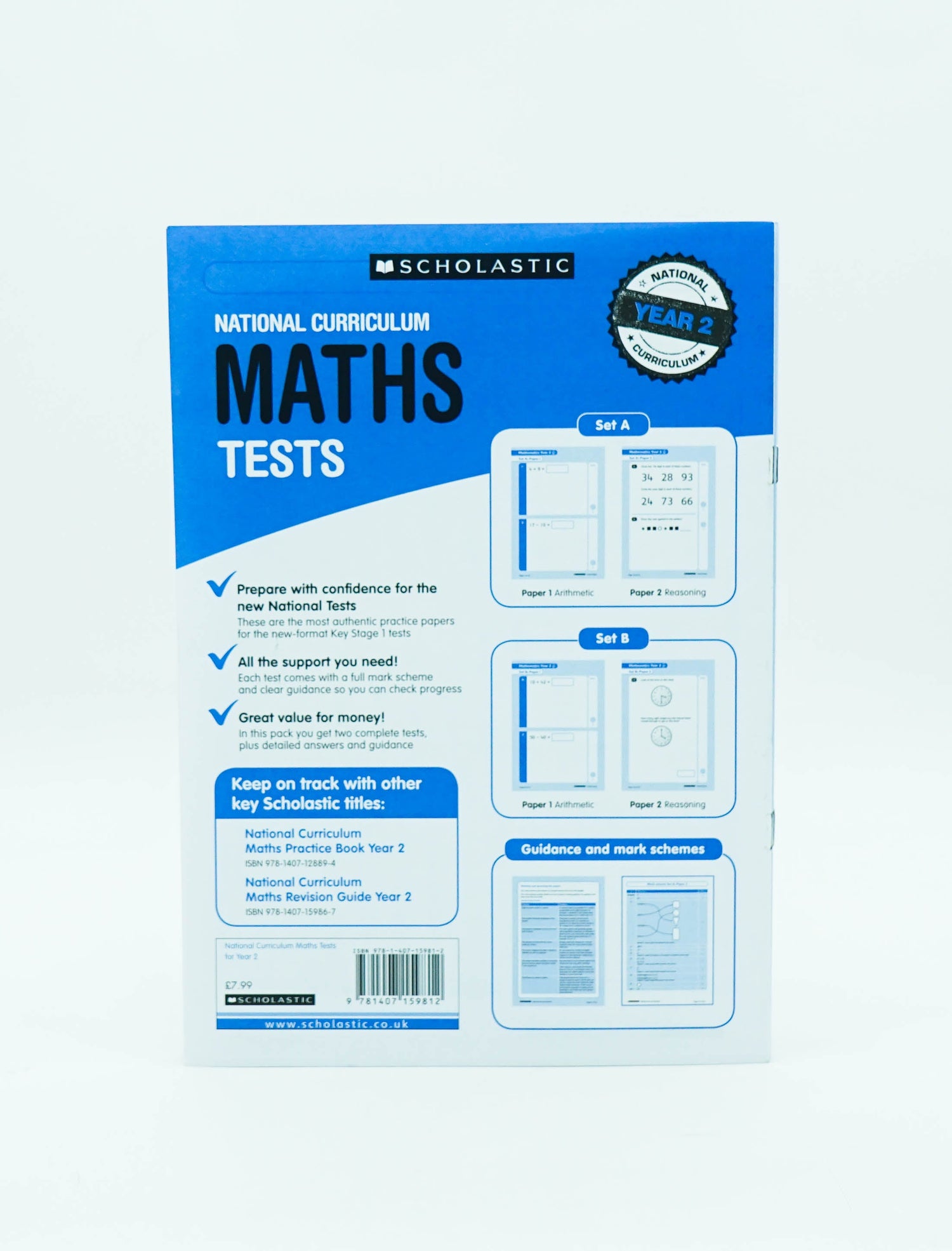 Prepare with confidence for the new format Key Stage 1 SATs testswith Scholastic National Curriculum Tests.The National tests are changing in 2016, and Scholastic's new practicetests are fully in line with the new format Mathematics testsfor children in Year 2. Each pack comes with two complete practicetests with an accompanying Guidance and Mark Scheme booklet.These practice tests have a similar look and feel to the new MathematicsSATs test, to help familiarise children with both the contentand format of these tests. The tests can be used to track progressin school, but can also be used in the home. The Guidanceand Mark Scheme provides advice for parents and carers on how touse the tests and how to support children in preparing for them.Scholastic National Curriculum Revision Year 2 is also available,offering children the opportunity to check their progress acrossthe Mathematics curriculum and to develop the skills they need forthese national tests.