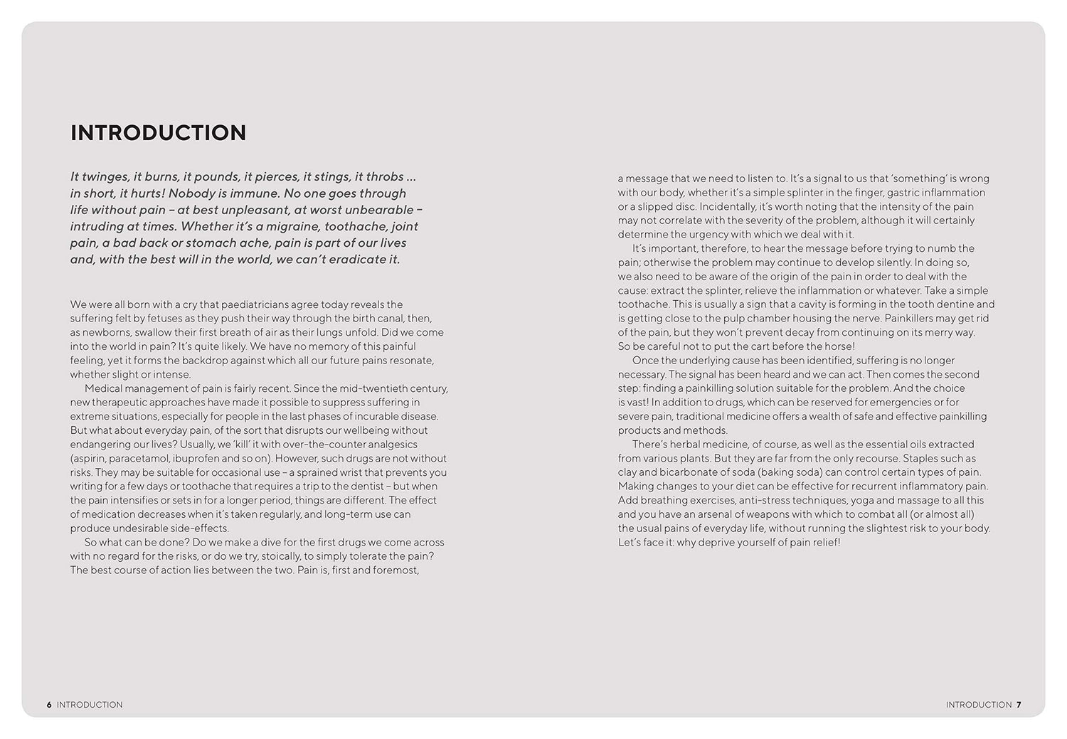 This book is your indispensable guide to relieving pain the natural way, using a wide variety of methods including breathing and relaxation techniques, diet, yoga, massage, herbal poultices, balms, compresses, teas and rubs. Did you know pineapple has anti-inflammatory properties? And peppermint can relieve a headache? Or that you can alleviate joint pain by massaging specific points on the wrist?