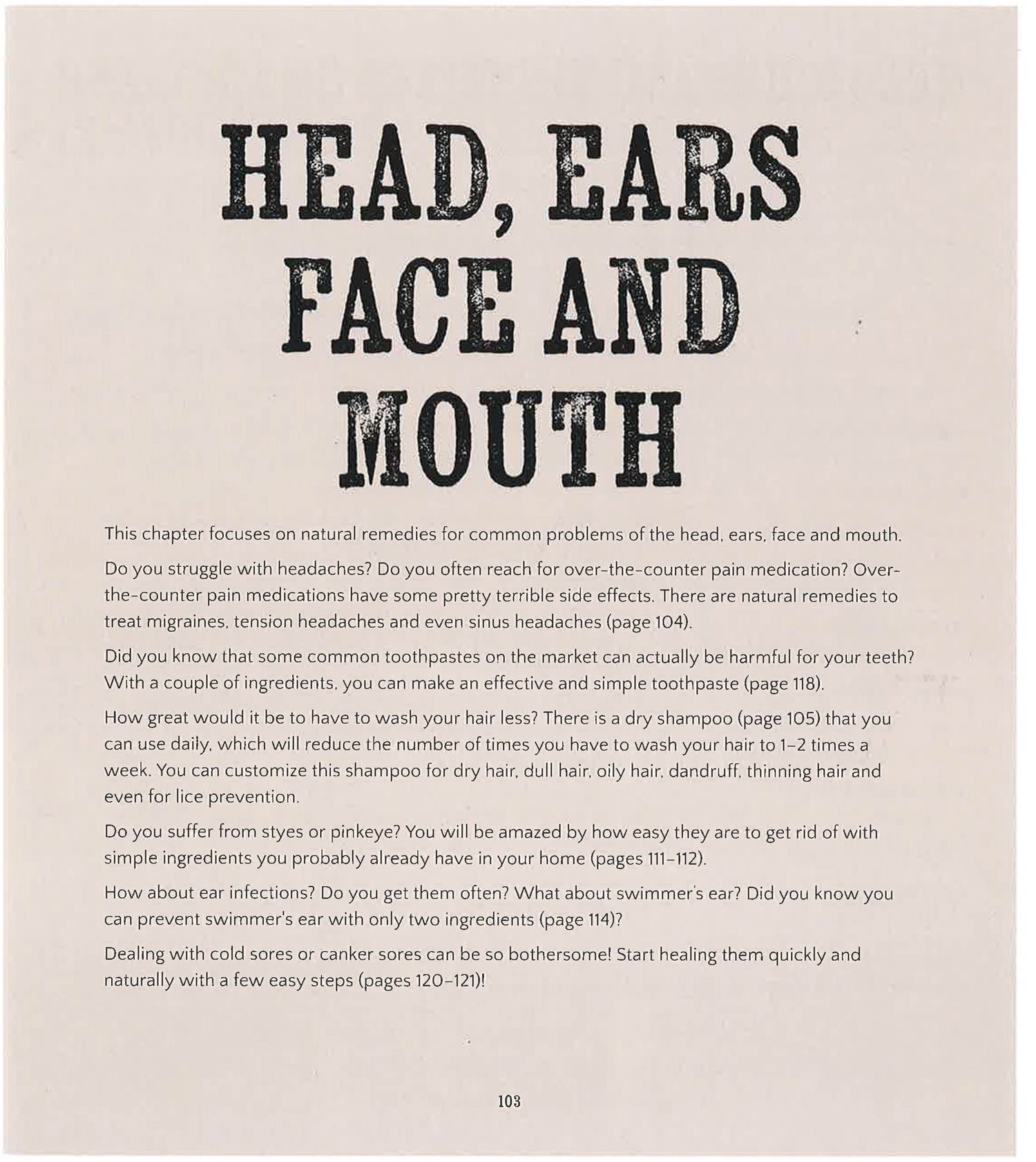 This valuable, practical guide is your answer to provide your family with a life free from harsh everyday chemicals. With Natural Solutions for Cleaning & Wellness and a few ingredients from your kitchen, you can clean your home and treat minor ailments, naturally! Halle Cottis shows you how to use all-natural concoctions to transform your house into a toxic-free home. She details how common kitchen ingredients can be used as natural solutions to save time and money, both in the home - with Kitchen Disinfectant Cleaner, Dry & Liquid Laundry Detergent or Pest Control - and for your health, whether you are dealing with Headaches & Migraines, Skin or Digestive System issues. This book will have 100 recipes for remedies and cleaners.