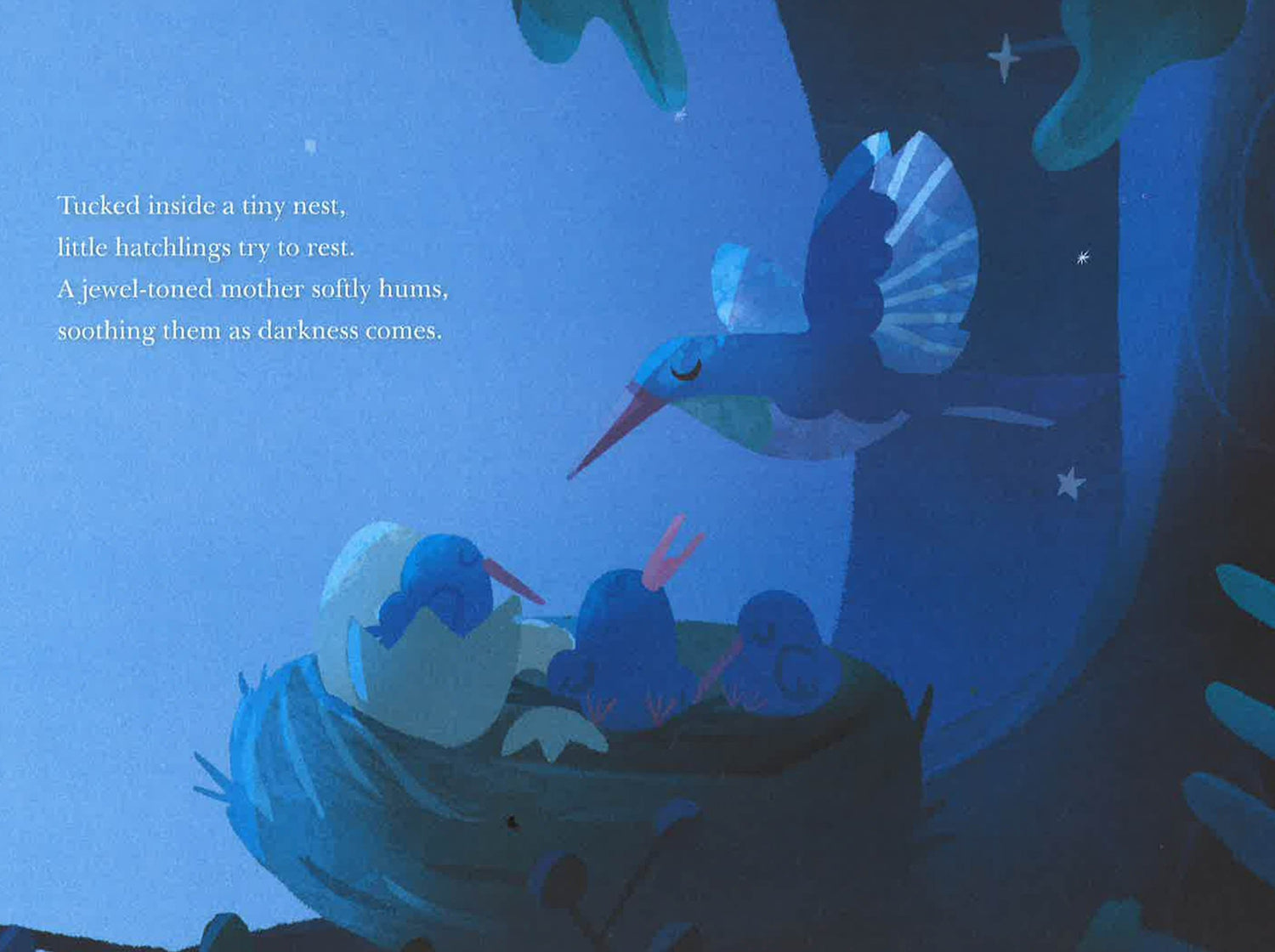 Night falls, and the world sings a lullaby in this beautifully imagined picture book. The lush illustrations and gentle, rhyming text will lull young readers to sleep.Shh - listen. Can you hear the quiet, loving sounds of the nighttime world? From moths fluttering their powdery wings, to a nightingale’s sweet trills, to swaying willow trees softly shushing, shushing everyone to sleep, this rhythmic, rhyming lullaby will soothe and calm little ones. The tender, nature-filled bedtime scenes sweep across land, sky, and sea, with animal parents everywhere tucking in their children. A final scene featuring a mother and her baby brings the whole story back home.