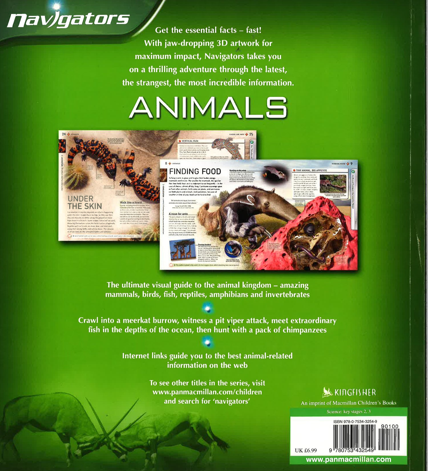 Navigate your way through a fantastic range of subjects with this visually spectacular new series. Every spread is brimming with lively text, amazing photographs and artworks, and weblinks and quotes. Panels throughout offer focused information on specific topics. Discover the wonders of the animal kingdom and get up-close to teeth, fur, fins, claws and feelers. The world's beasts are brought together with essential facts about each animal group. Fly high on an airborne hunt with an osprey, follow a lobster migration route, watch an anteater's tongue catch termites in their nest and dive in the deep ocean with a lanternfish.