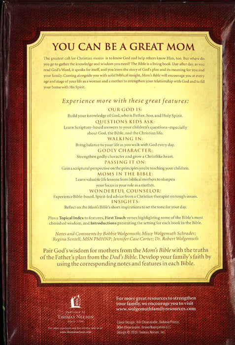 Mom's Bible: God's Wisdom for Mothers gives women an awareness of just how precious and vital they are in God's plan for the family.