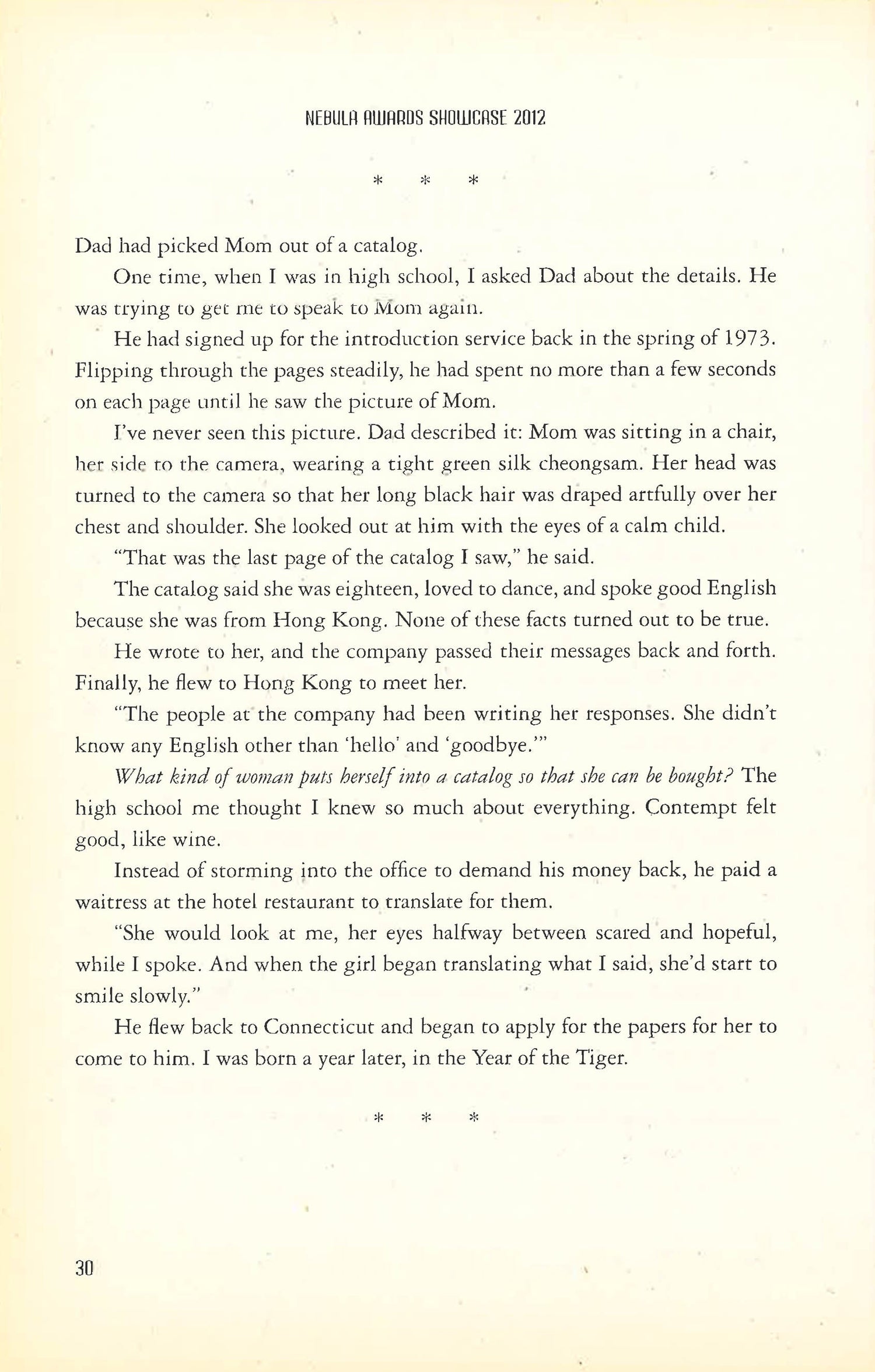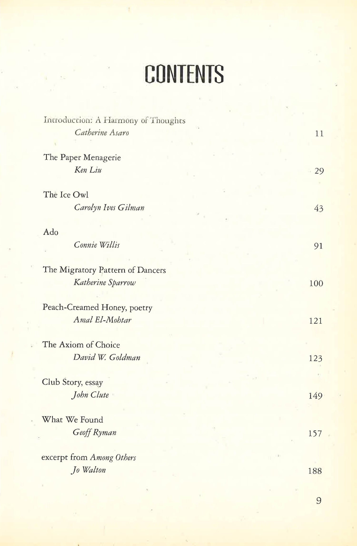 The Nebula Awards Showcase volumes have been published annually since 1966, reprinting the winning and nominated stories in the Nebula Awards, voted on by the members of the Science Fiction & Fantasy Writers of America(R). The editor selected by SFWA's anthology committee (chaired by Mike Resnick) is two-time Nebula winner, Catherine Asaro. This year's volume includes stories and excerpts by Connie Willis, Jo Walton, Kij Johnson, Geoff Ryman, John Clute, Carolyn Ives Gilman, Ferrett Steinmetz, Ken Liu, Nancy Fulda, Delia Sherman, Amal El-Mohtar, C. S. E. Cooney, David Goldman, Katherine Sparrow, E. Lily Yu, and Brad R. Torgersen.