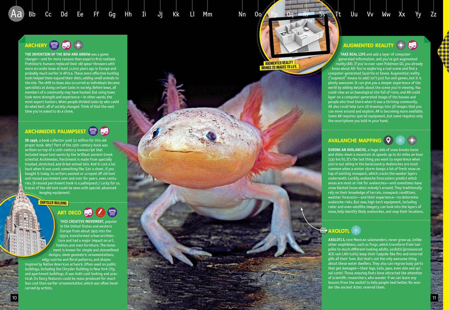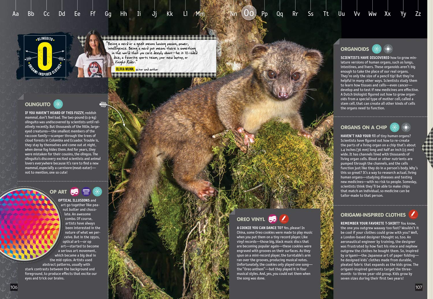 Inside, you'll find browsable, info-packed blurbs that'll give you the lowdown on everything from augmented reality to zydeco, with larger features that dive deep into fascinating topics like UFOs, pirates, artificial intelligence, and daring circus acts. You'll find out what kind of nerd you are with superfun flowchart quizzes. And you'll hear from the world's most notable (and quotable) Nerds of Note from history and today.