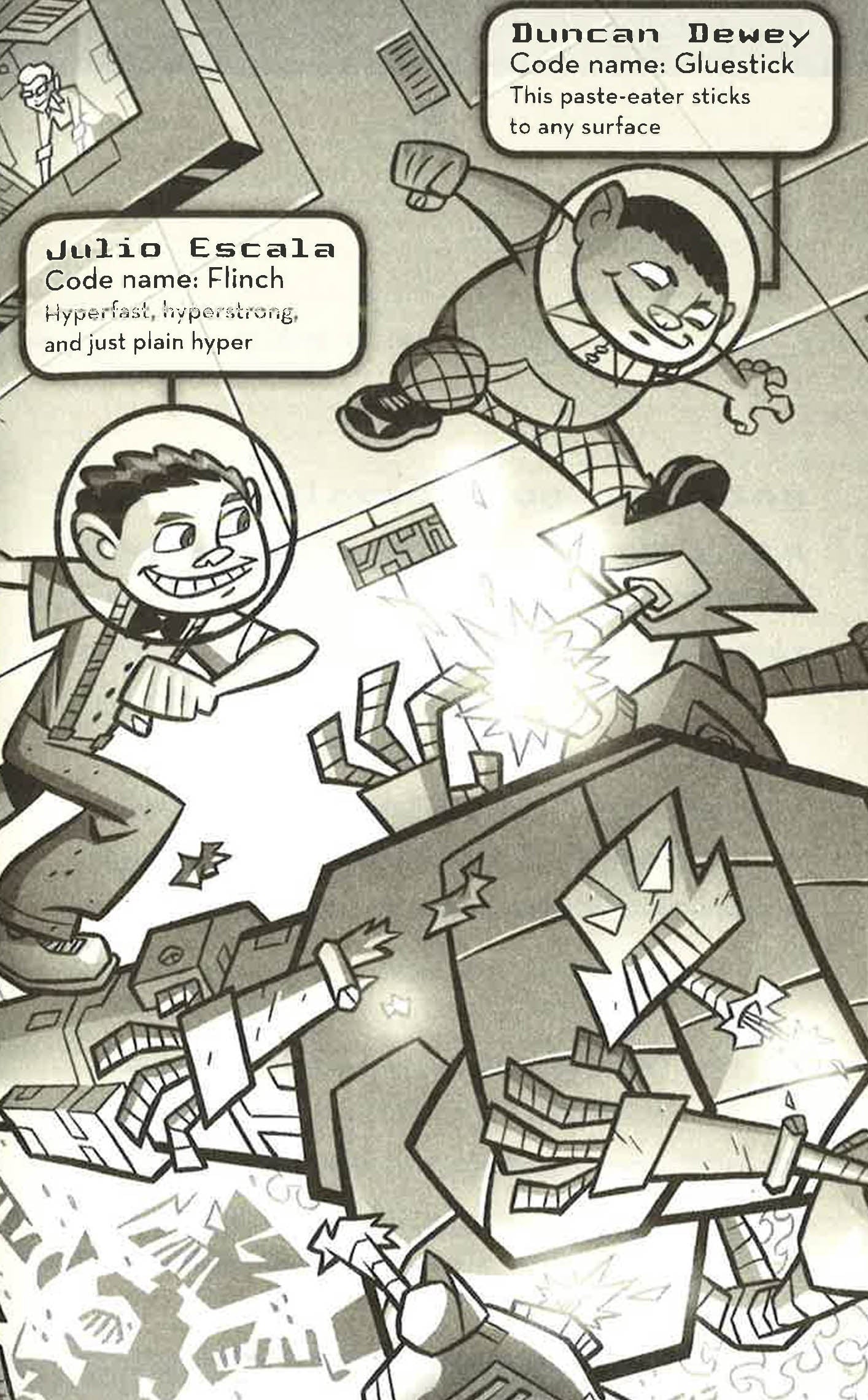 In this second outing for the 5th grade super spies, Duncan Dewey, codename "Gluestick", is the point of view character. This time the group must fight a very unlikely villain - he still lives with his Mum. In other words, it's the NERDS against a nerd.