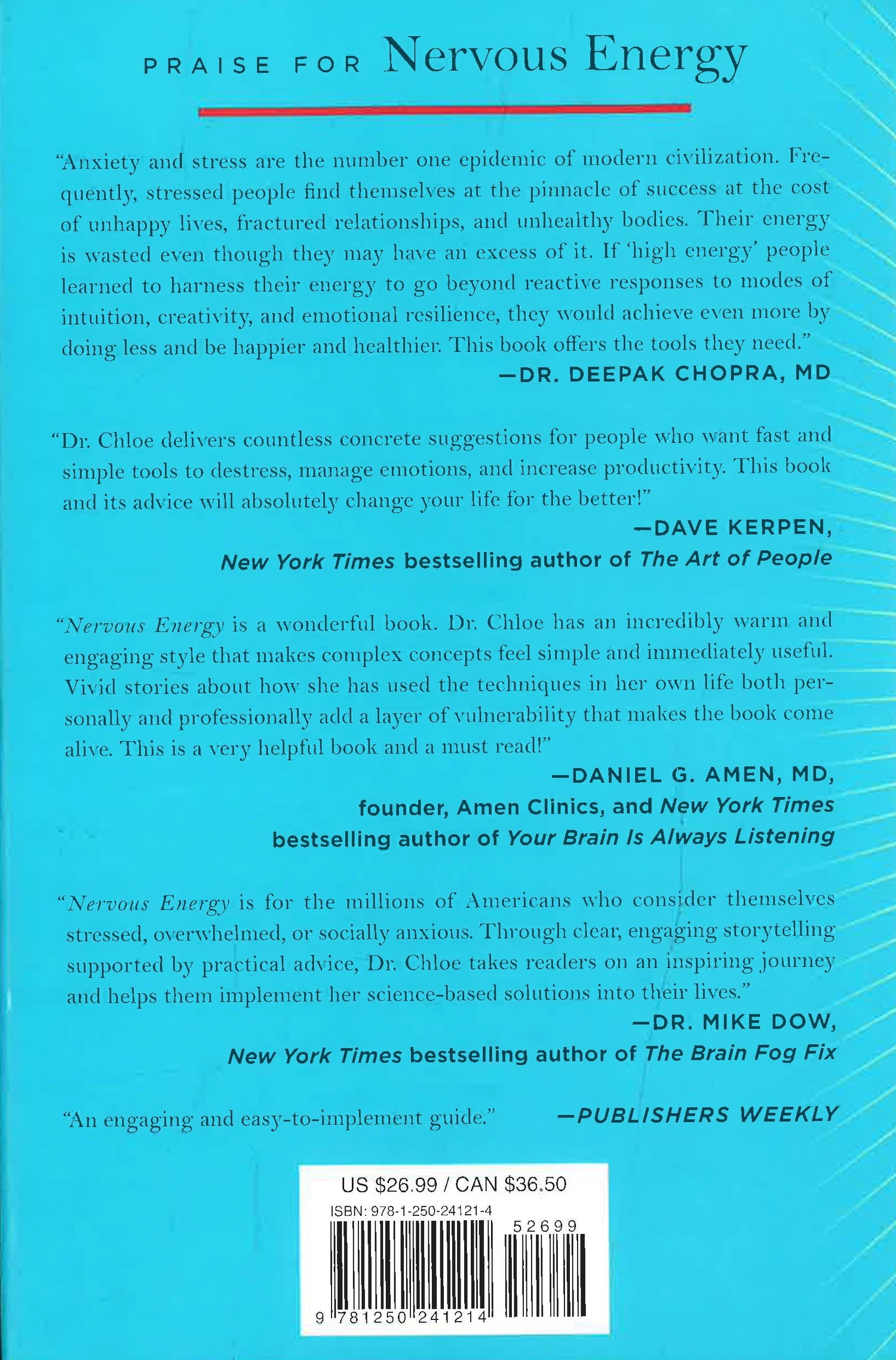 Oftentimes, young adults reach success by deliberately being their own worst critic and obsessively double-checking their work; or by pushing their feelings aside. This strategy is seductive because it does work, at least up to a certain point. The problems arise once you advance beyond school and early career stages. The higher you climb, the more complex projects and issues in your life become. Meanwhile, you may have become so good at putting your emotions aside in certain situations that it's hard to reconnect with them. This is when the old tools no longer suffice. The 'somewhat OCD' tendencies we pride ourselves on, or rather, the "Nervous Energy" we possess, can become mismanaged, and lead us down a rabbit hole of excessive self-criticism, anxiety, and pessimism. In Nervous Energy, Dr. Chloe Carmichael outlines nine tools with step-by-step instructions that can help you harness your Nervous Energy in order to live a more productive and fulfilling life. If managed correctly, the nervous energy that some people label as anxiety can actually be a source of stimulation, productivity, and fulfillment - and Dr. Chloe Carmichael has tried and tested methods for making this happen. If you've ever felt a sense of excess energy that you didn't quite know how to direct, or felt that your creativity and motivation was being drained by constant analysis paralysis, Nervous Energy is for you.