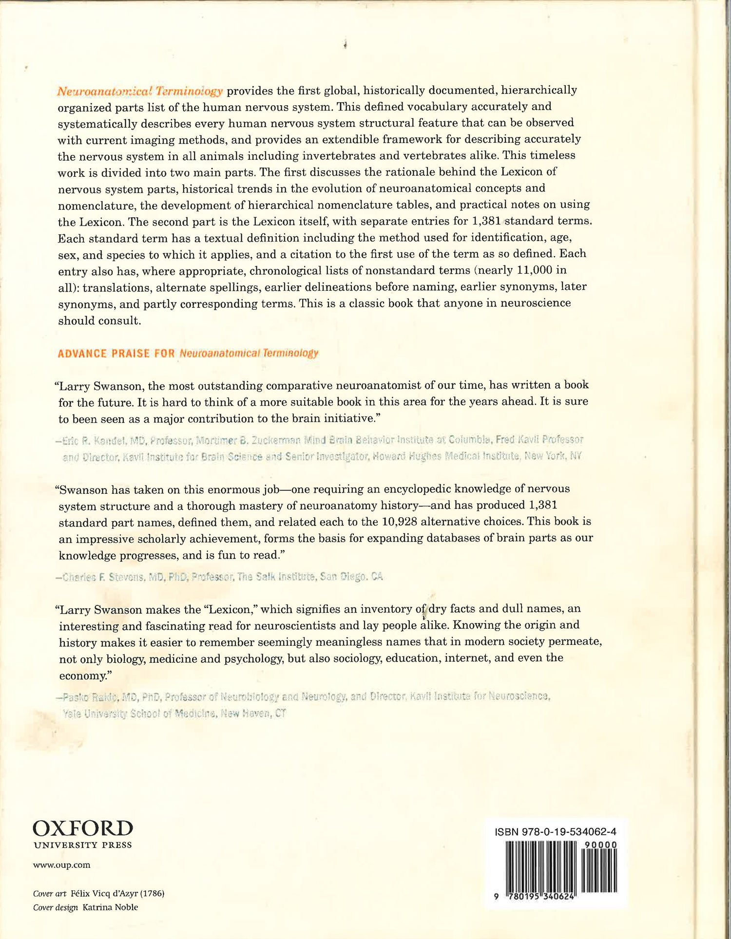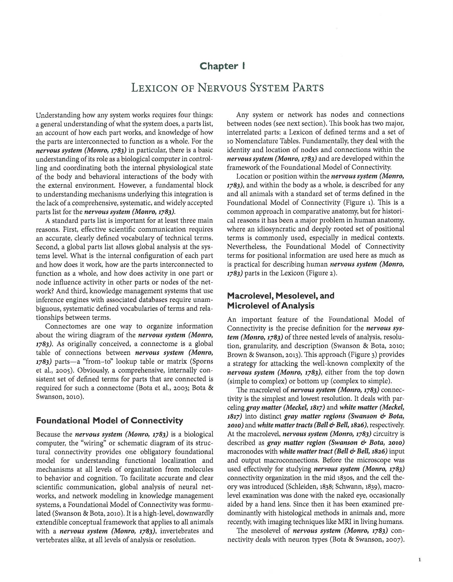 Human brain imaging, connectomics, network analysis, and neuroinformatics are just some of the important current arenas in neuroscience addressed here. The book solves a fundamental problem by supplying the first global, historically documented, hierarchically organized human nervous system parts list. This defined vocabulary accurately and systematically describes every human nervous system structural feature that can be observed with current imaging methods, and provides an extendible framework for describing accurately the nervous system in all animals including invertebrates and vertebrates alike. Research for the book began in the late 1990s when the lack of a systematic vocabulary for neuroanatomy became a critical problem in developing databases and online knowledge management systems for the NIH Human Brain Project (1995-2005), which grew out of the Institute of Medicine's Committee on a National Neural Circuitry Database (1989). One outcome of this research was the publication with Mihail Bota in 2011 of a Foundational Model of Connectivity. It provides the conceptual framework for this book, which is divided into three main parts. The first consists of four chapters discussing the rationale behind the Lexicon of nervous system parts, historical trends in the evolution of neuroanatomical concepts and nomenclature, the development of hierarchical nomenclature tables, and practical notes on using the Lexicon. The second part is the Lexicon itself, with separate entries for 1,381 standard terms. Each standard term has a textual definition including the method used for identification, age, sex, and species to which it applies, and a citation to the first use of the term as so defined. Each entry also has, where appropriate, chronological lists of nonstandard terms (10,928 in all): translations, alternate spellings, earlier delineations before naming, earlier synonyms, later synonyms, and partly corresponding terms. The third part is a set of 10 hierarchical nomenclature tables of nervous system standard terms.