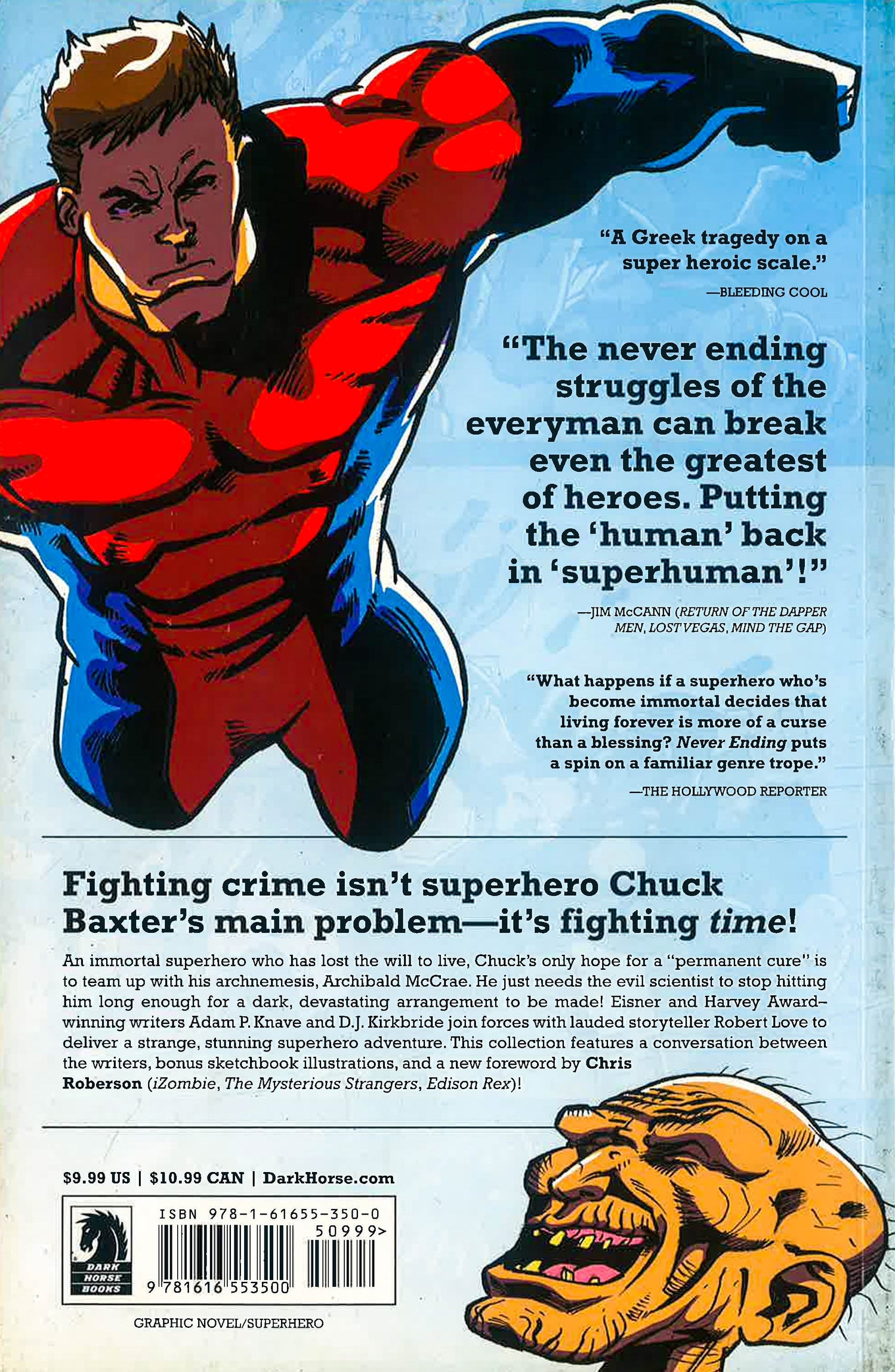 Fighting crime isn't superhero Charles Baxter's main problem - it's fighting time! Trapped for decades in a super-powered body that never ages but is now driving him insane, Chuck's only hope is to team up with his arch-nemesis Archibald Crane.. *This book may have remainder mark*