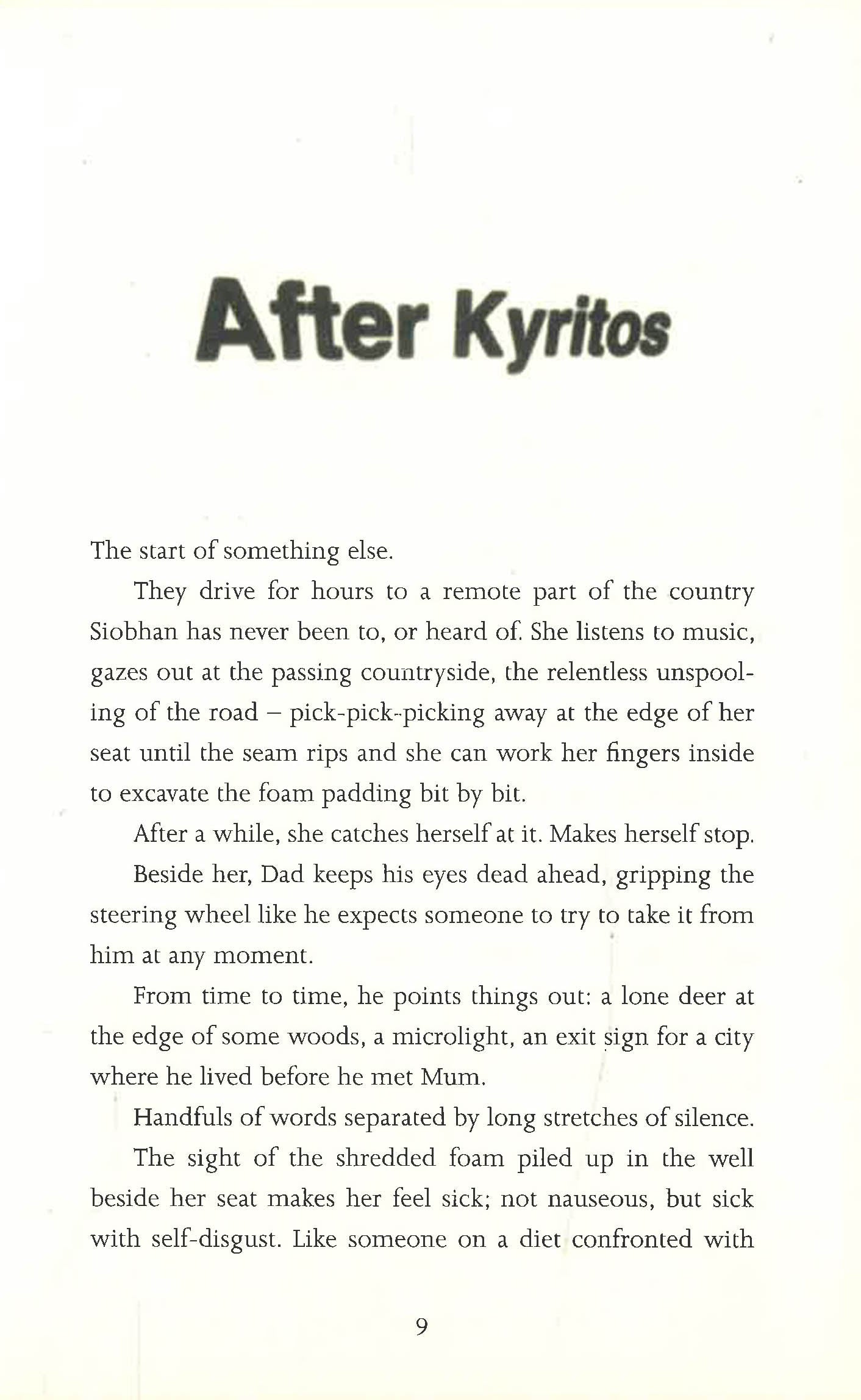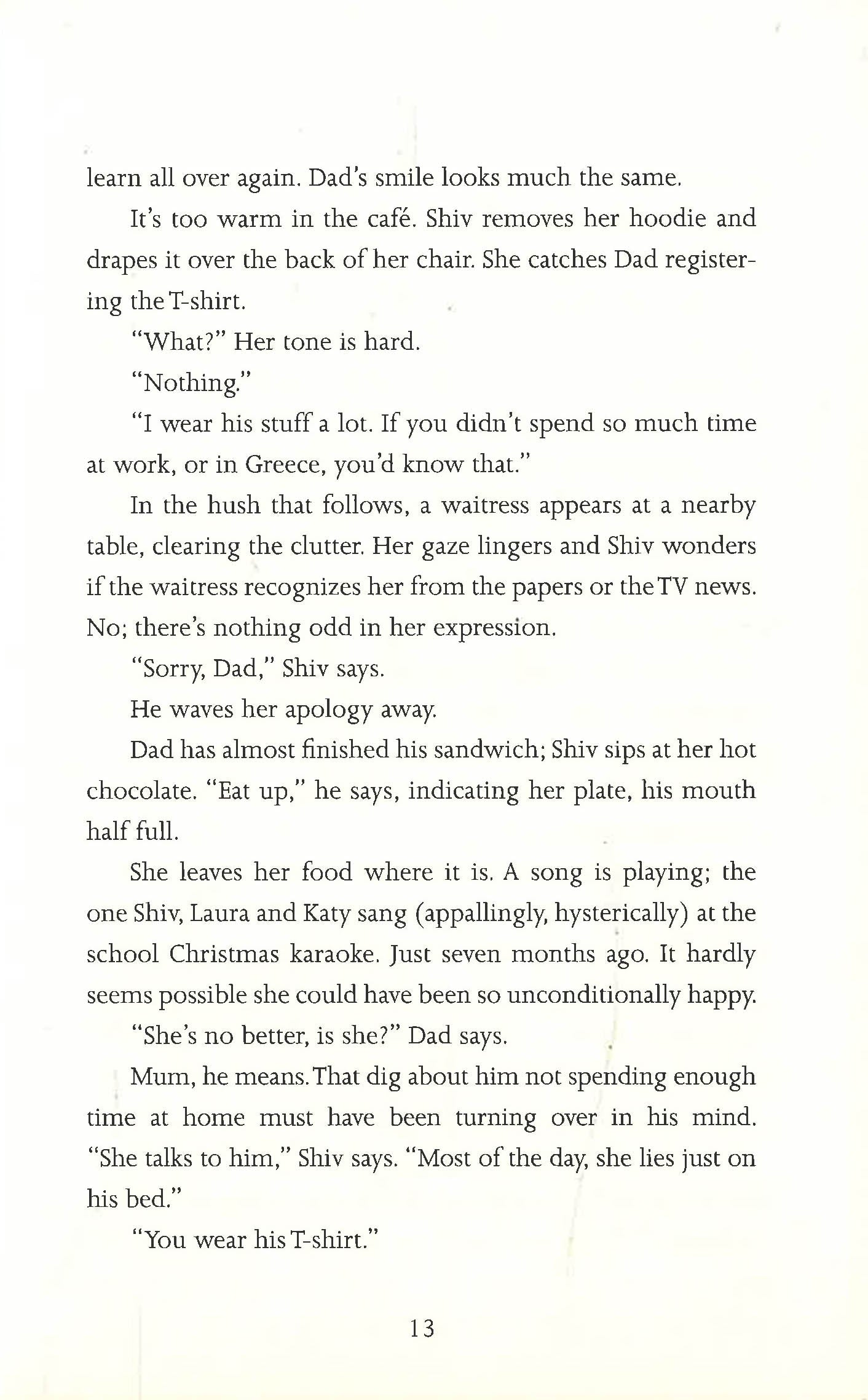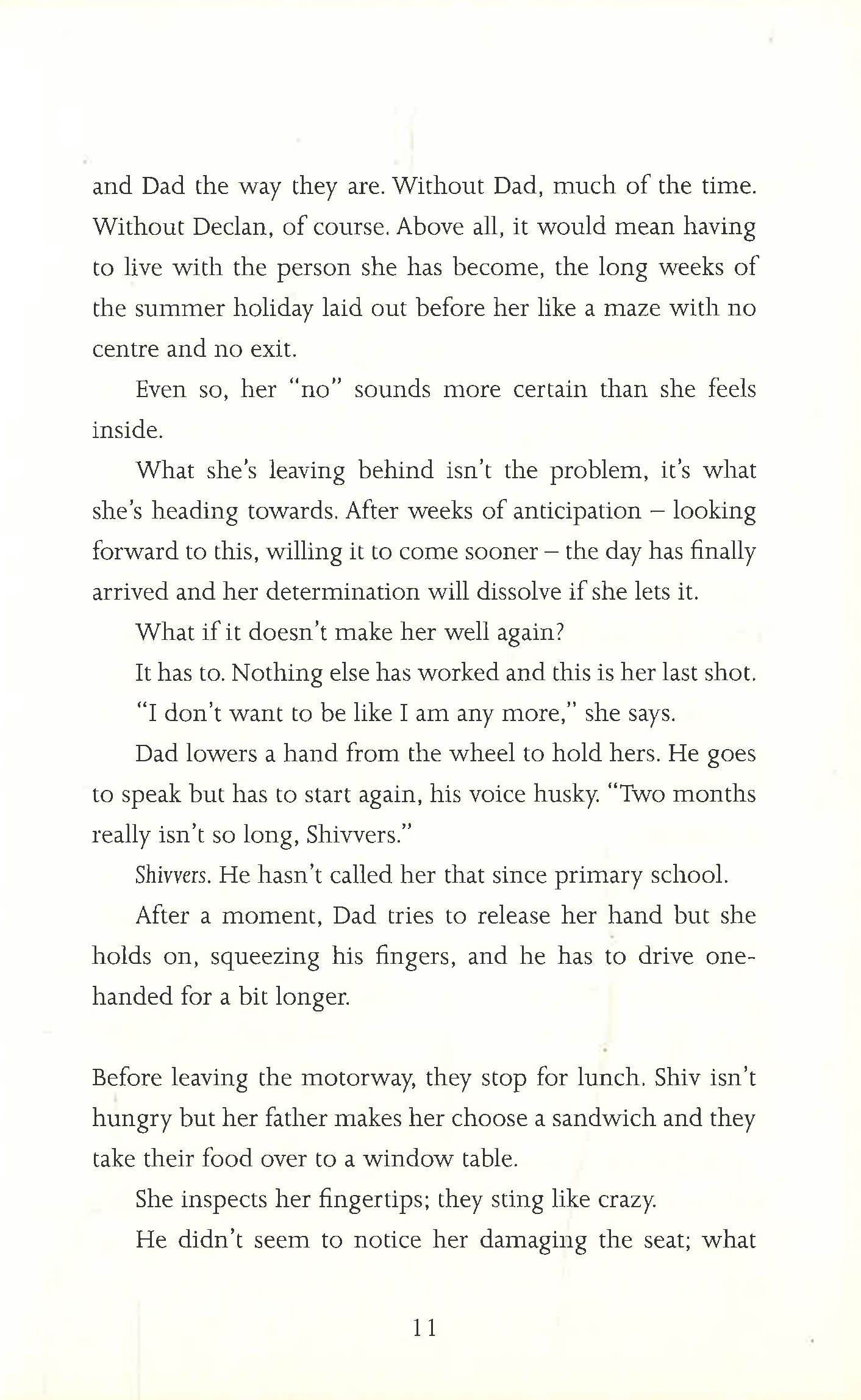 Shiv's best mate, her younger brother, Declan, died while their family was on holiday in Greece. Shiv doesn't know how to live any more - she can only feel self-hatred; she is tormented by guilt. Now she finds herself at the Korsakoff Clinic, with five other teens and young adults who are undergoing a most unorthodox therapy, which is often painful. But this is Shiv's last chance - the clinic must help her find a way to live again. But first, their methods will make her face what really happened to her brother.