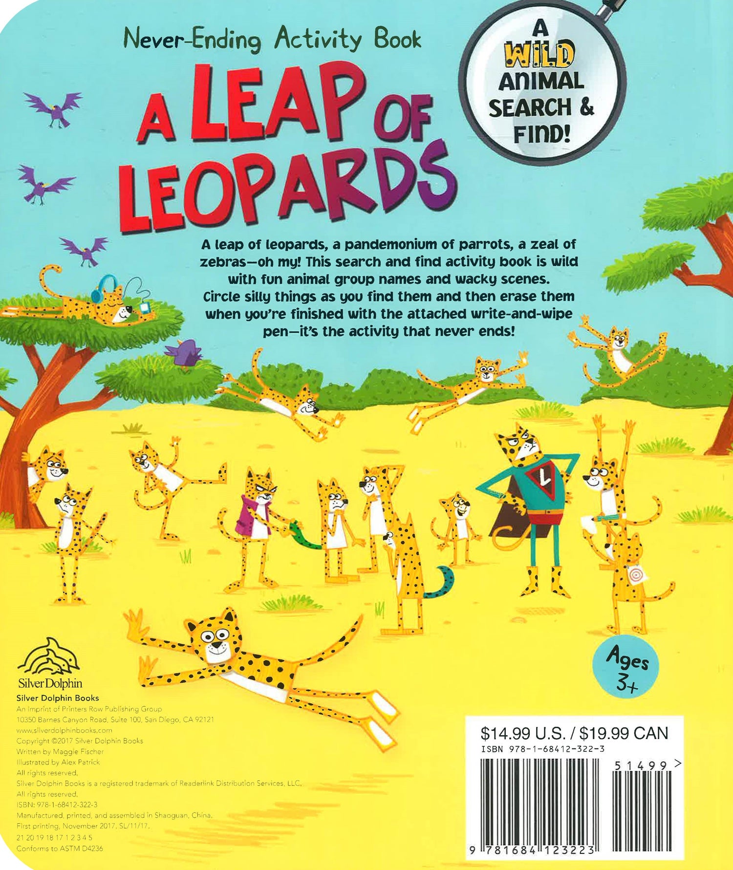 A leap of leopards, a pandemonium of parrots, a zeal of zebras—oh my! This search-and-find activity book is wild with fun animal group names and wacky scenes. Use the attached write-and-wipe pen to circle silly things as you find them and then erase them when you’re finished—it’s the activity that never ends!