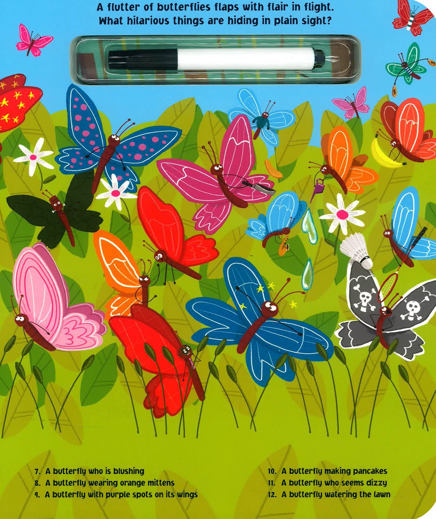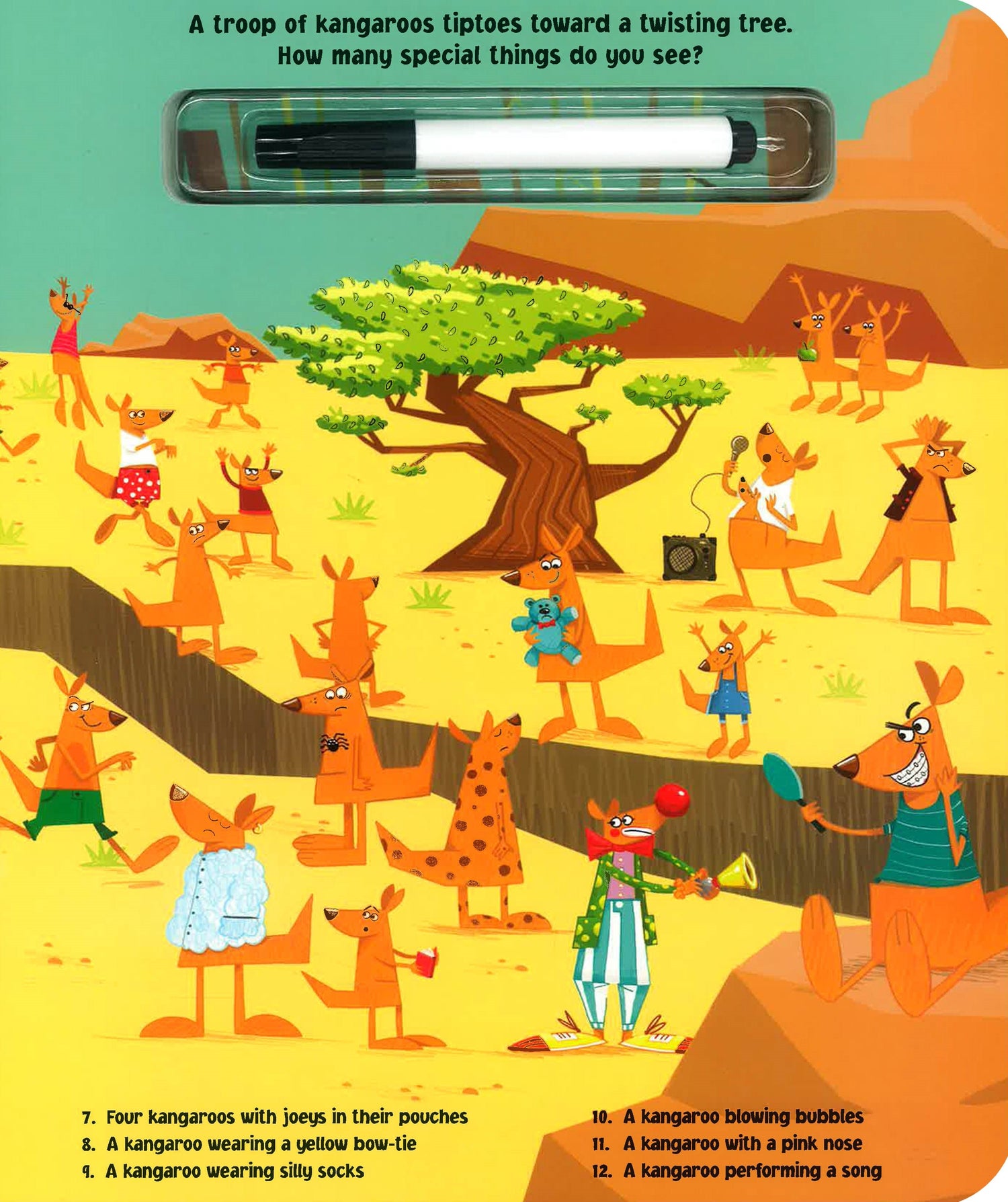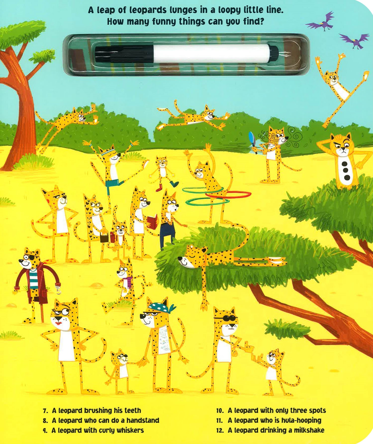Solve this wild search-and-find again and again with the attached write-and-wipe pen!