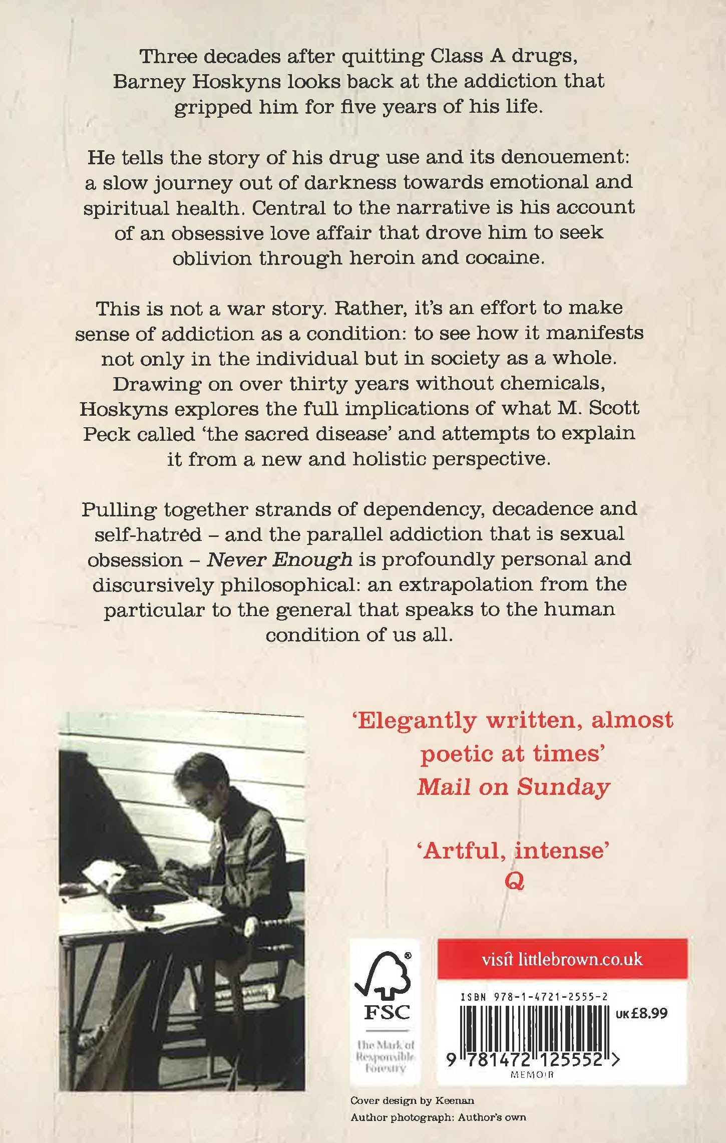 This book could save your life' John Crace'An unblinking account of living with - and more importantly, beyond - addiction. Brave, clear-eyed and inspiring' John Niven'A rich, uplifting memoir: Hoskyns portrays how painful inadequacy, masked by drugs, can be replaced by the messiness of ordinary life' Oliver JamesA few months after graduating with a 1st class honours degree from Oxford University, Barney Hoskyns sat in a damp Clapham basement and asked his best friend to inject him with heroin. From that moment on, for the next three years, Hoskyns is hopelessly hooked. This is the searingly honest story of what brought him to this place - and how he got himself out of it. Barney Hoskyns is one of the leading music writers of our time: his books have ranged the musical landscape from Led Zeppelin to Tom Waits, from Laurel Canyon to Woodstock. His articles have appeared in NME, Melody Maker, Rolling Stone and Vogue, and in 2000 he founded Rock's Backpages. Hoskyns beautifully describes the relationship between music and addiction, between love and infatuation. Never Enough is Hoskyns's raw, uncompromising and utterly compelling account of the highs and lows of life under the needle. Interspersed with photos and diary entries, Hosykns examines why he so willingly gave himself up to the death-grip of heroin, and what it took to finally free himself from it.