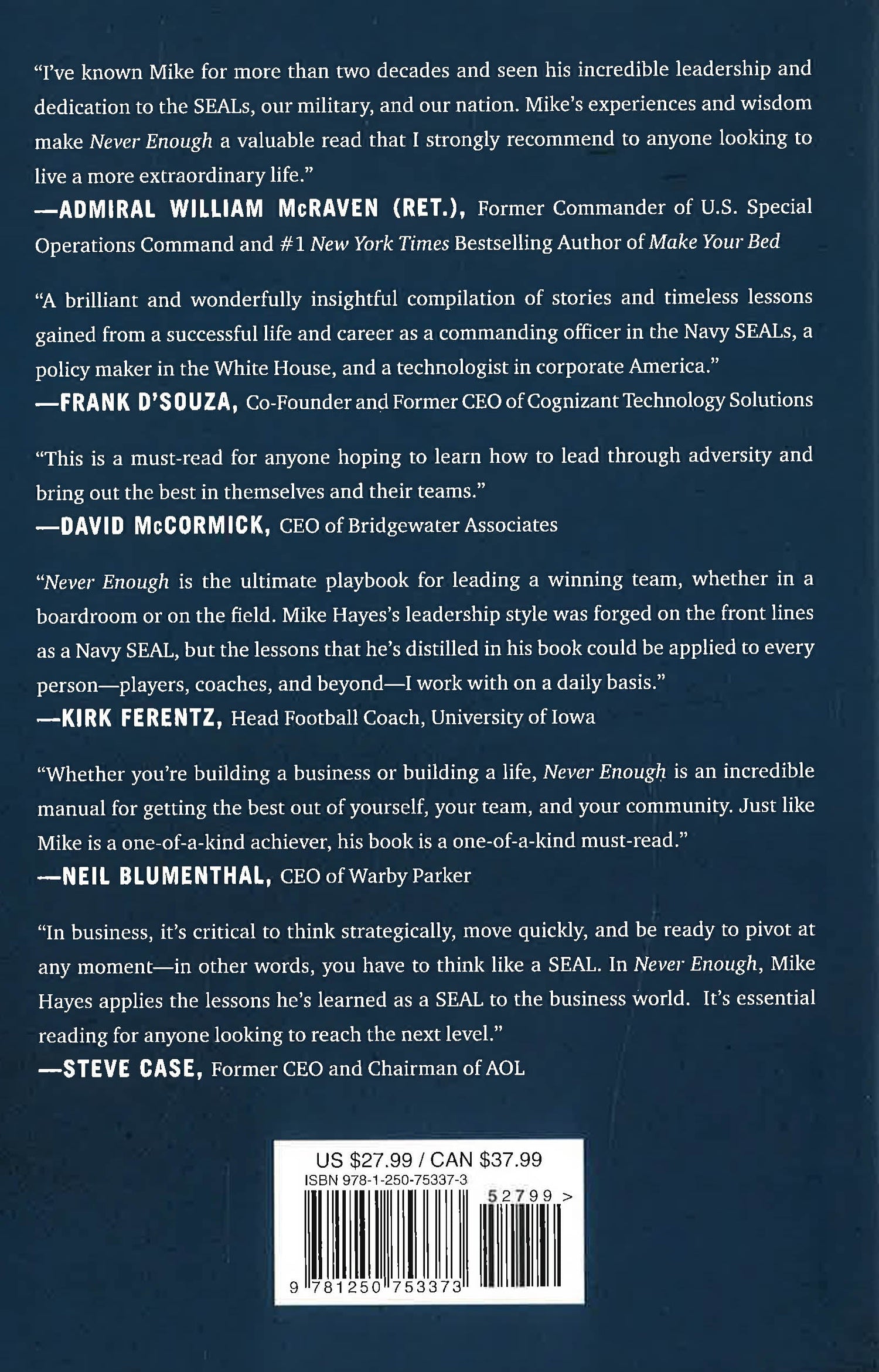 In Never Enough, Mike Hayes--former Commander of SEAL Team TWO--helps readers apply high-stakes lessons about excellence, agility, and meaning across their personal and professional lives.