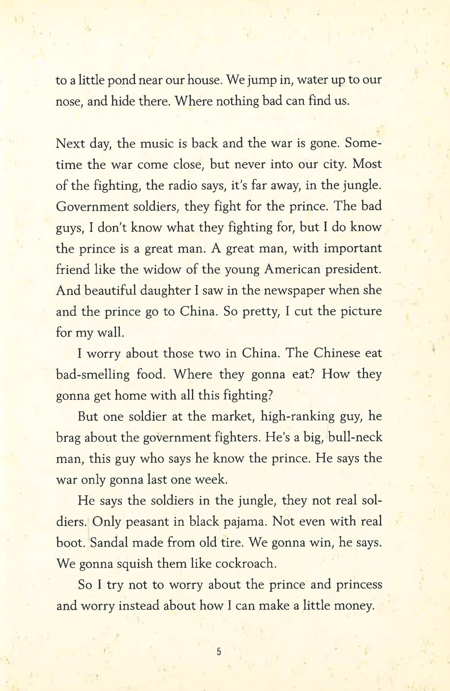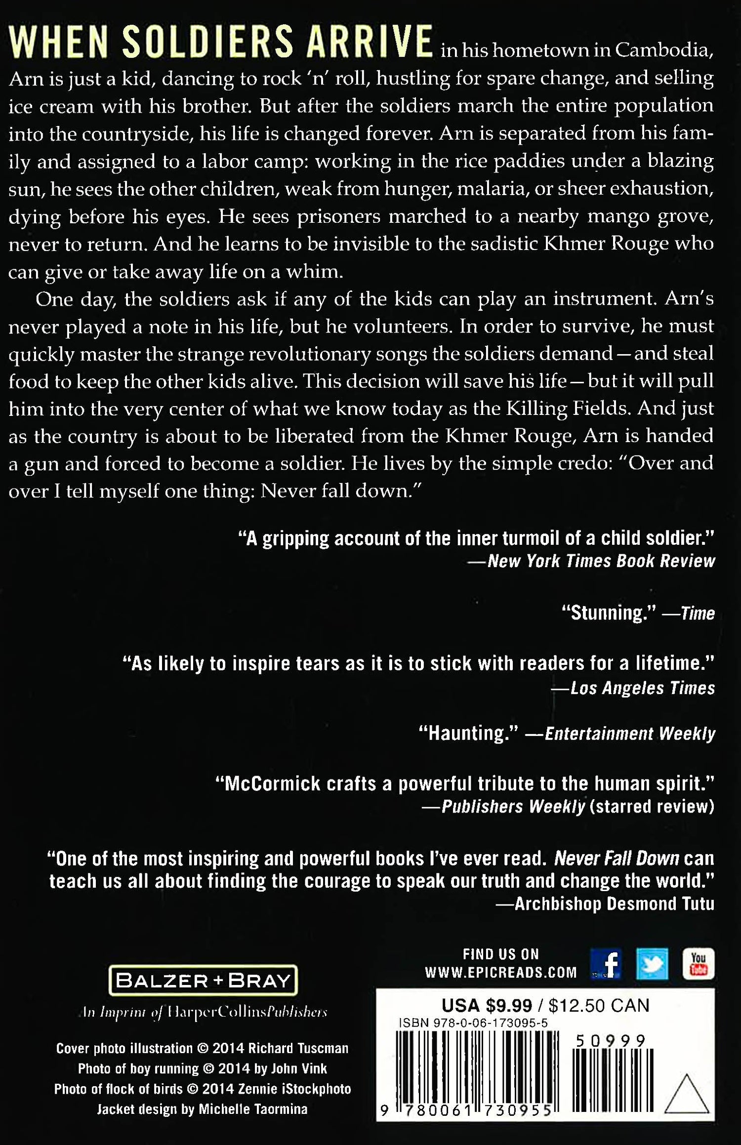 This National Book Award nominee from two-time finalist Patricia McCormick is the unforgettable story of Arn Chorn-Pond, who defied the odds to survive the Cambodian genocide of 1975-1979 and the labor camps of the Khmer Rouge. Based on the true story of Cambodian advocate Arn Chorn-Pond, and authentically told from his point of view as a young boy, this is an achingly raw and powerful historical novel about a child of war who becomes a man of peace. It includes an author's note and acknowledgments from Arn Chorn-Pond himself. When soldiers arrive in his hometown, Arn is just a normal little boy. But after the soldiers march the entire population into the countryside, his life is changed forever. Arn is separated from his family and assigned to a labor camp: working in the rice paddies under a blazing sun, he sees the other children dying before his eyes. One day, the soldiers ask if any of the kids can play an instrument. Arn's never played a note in his life, but he volunteers. This decision will save his life, but it will pull him into the very center of what we know today as the Killing Fields. And just as the country is about to be liberated, Arn is handed a gun and forced to become a soldier. Supports the Common Core State Standards.