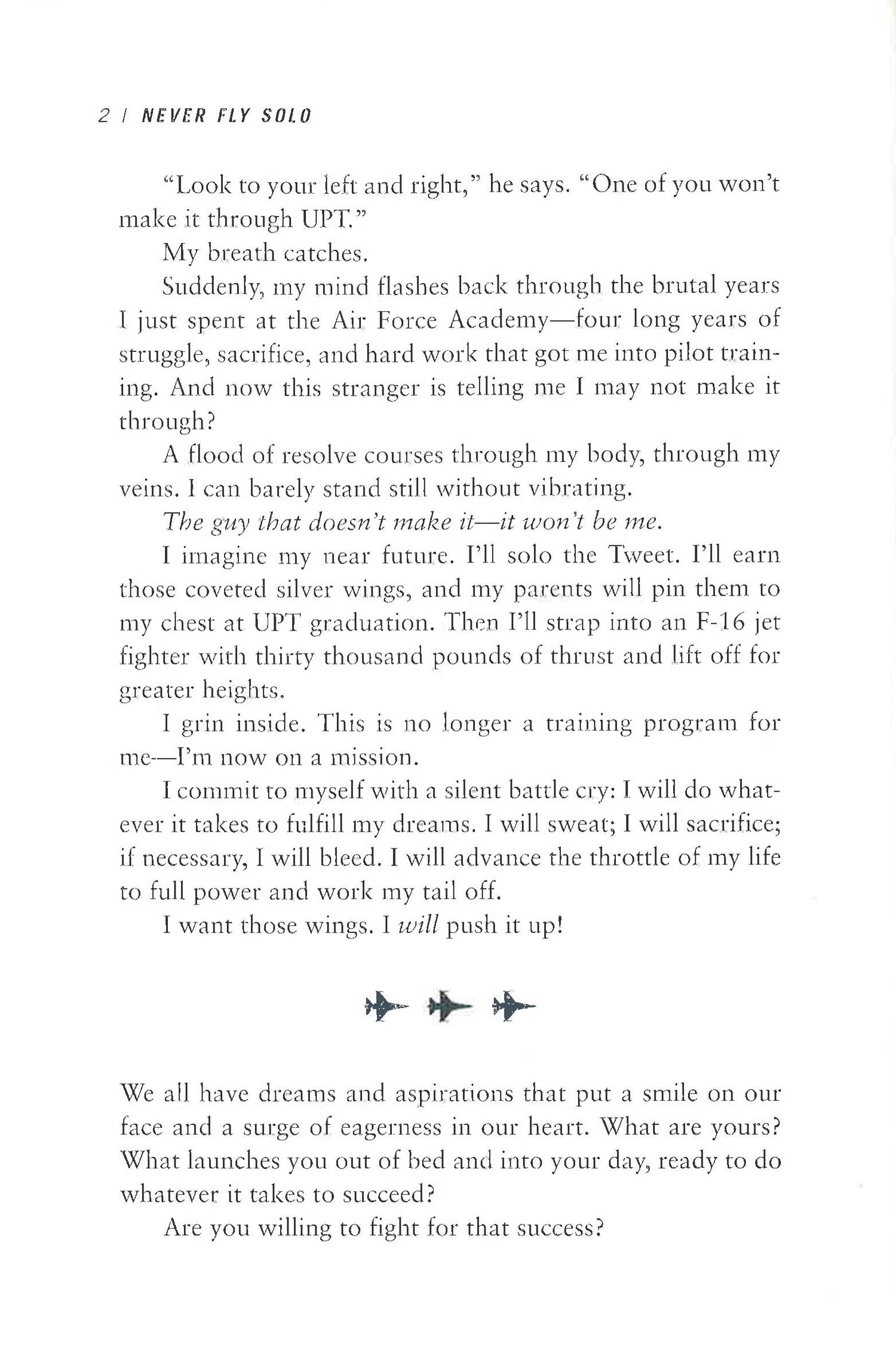You can't dodge these missiles alone. Never Fly Solois your flight plan for taking positive action that leadsto greater success.